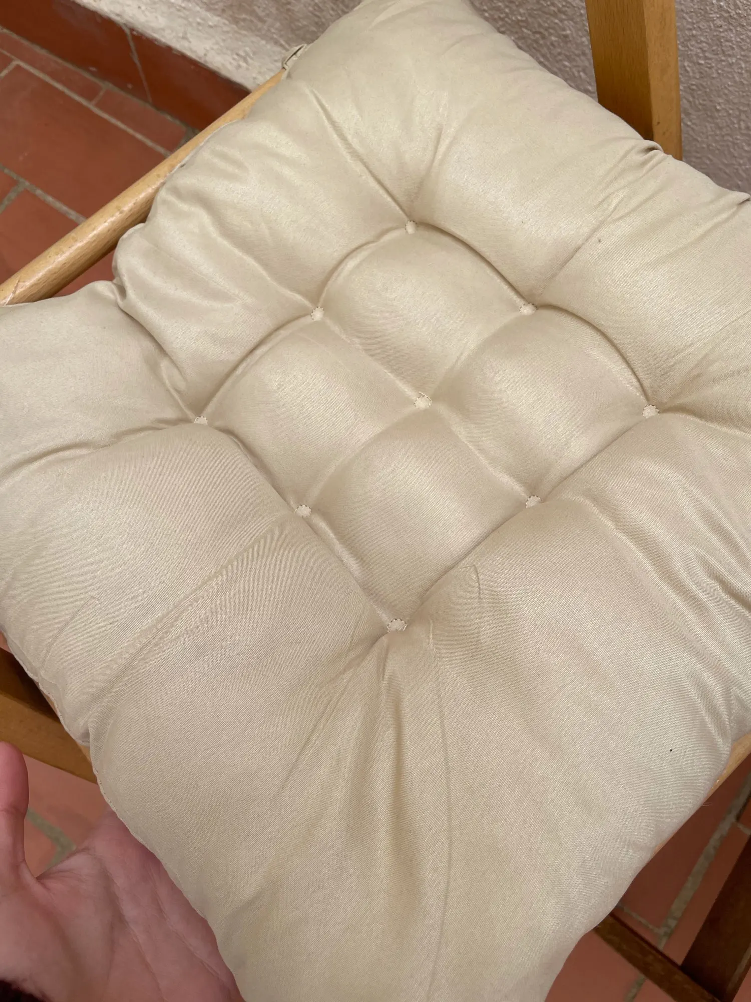 Супер подушечки. Для стульев из икеа идеально подходит, как потеплеет, на балконе буду отдыхать. Попке мягко, набиты хорошо, качество швов отлично, аккуратно прошито, я очень рада. Цвет больше как на первом фото. Доставка день в день, как обещано! Закажу ещё для остальных стульев.