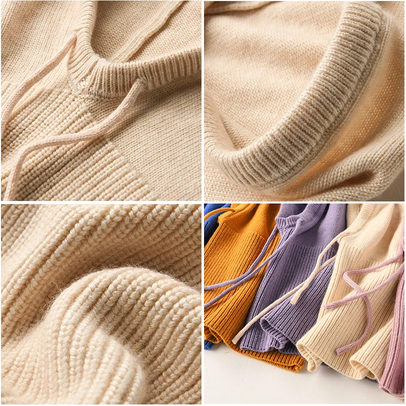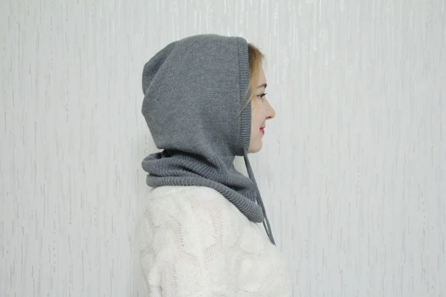 Шапка-капюшон шерстяная вязаная, унисекс, на завязках