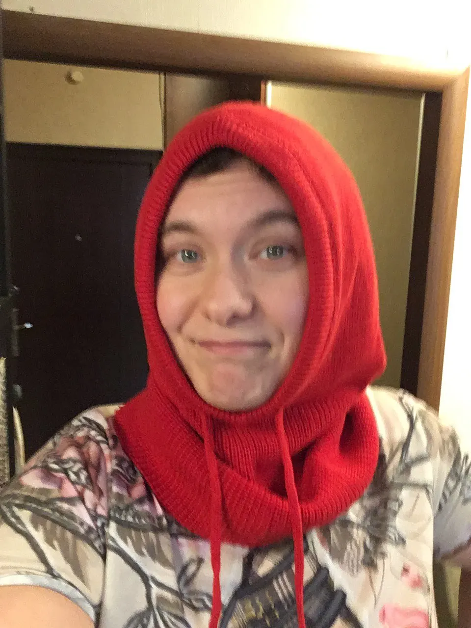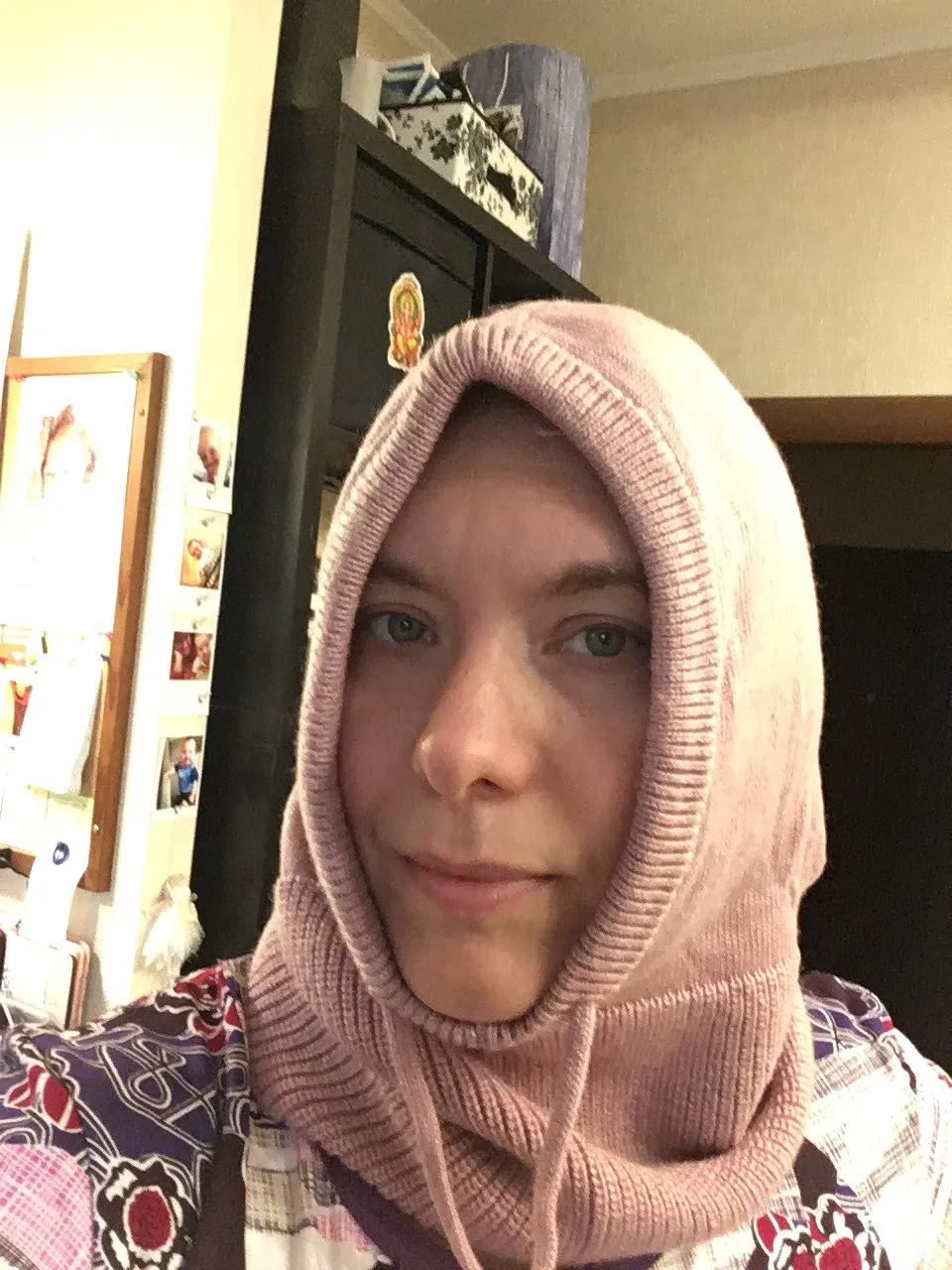 Капор Я люблю экспериметировать с различными головными уборами. На этот раз это удачный эсперимент Нереально удобно! Одна вещь заменяет шапку и шарф сразу, еще и защищает от ветра, потому что обхватывает лицо спереди. Дополнительно есть кулиска, можно затянуть, в моём случае, она просто декоративная. Материал указан - шерсть, кашемир и хлопок. Пряжа очень мягкая. Толщина не большая, но мне даже в -10 не холодно. Отлично смотрится как с шубами, так и с пуховиками. Рекомендую эту модную и удобную вещь!