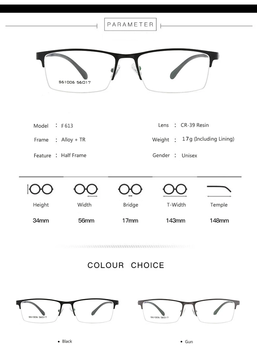 Ультралегкие мужские оптические оправы для очков для близорукости, TR полуободковая Металлическая петля, оправа для очков по рецепту F613