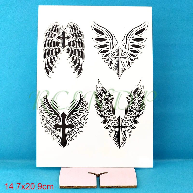 Водонепроницаемые временные тату наклейки Крылья Ангела крест перо черный поддельные тату флэш-тату большой размер татуировки для детей женщин мужчин