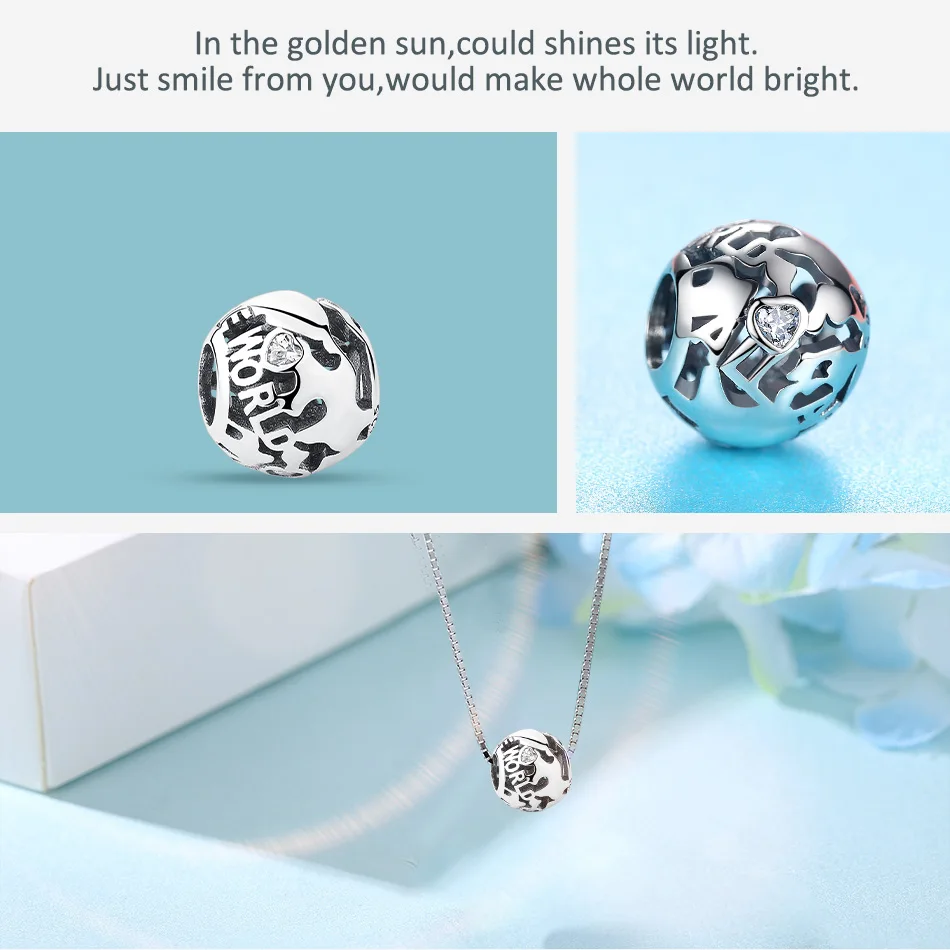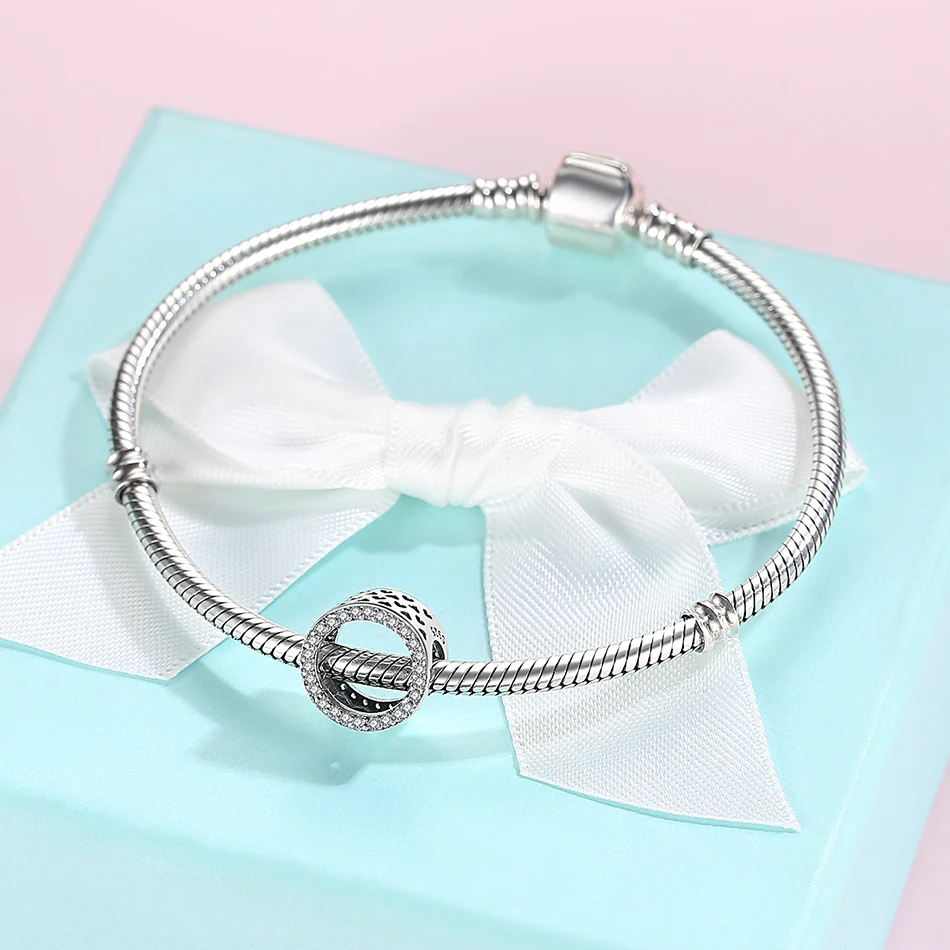 ELESHE подходят оригинальный браслет 925 стерлингового серебра Круглый амулет, с украшением в виде кристаллов мир серьги и кулон "Клевер" сердце, бусы, сделай сам, ювелирное изделие