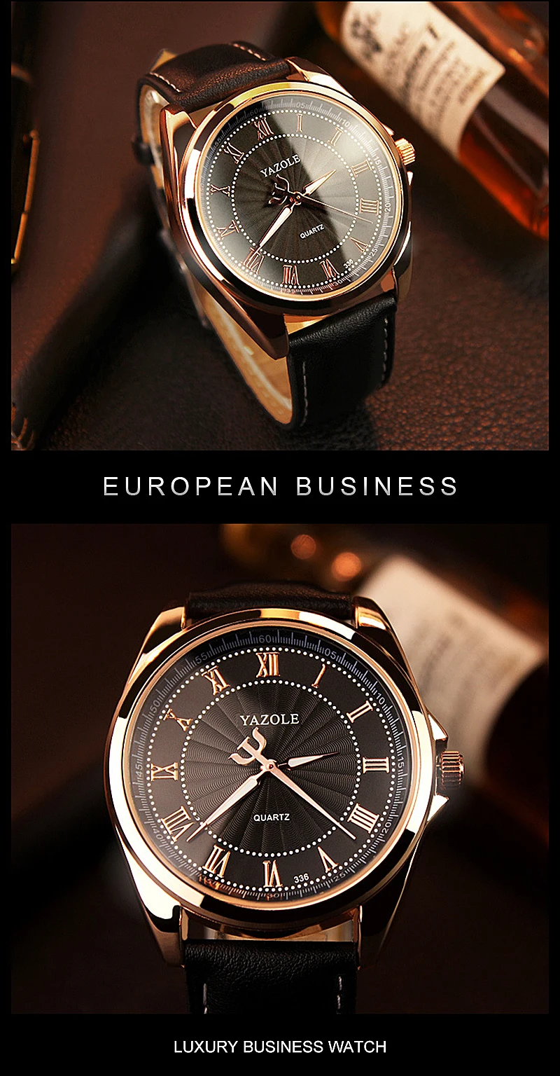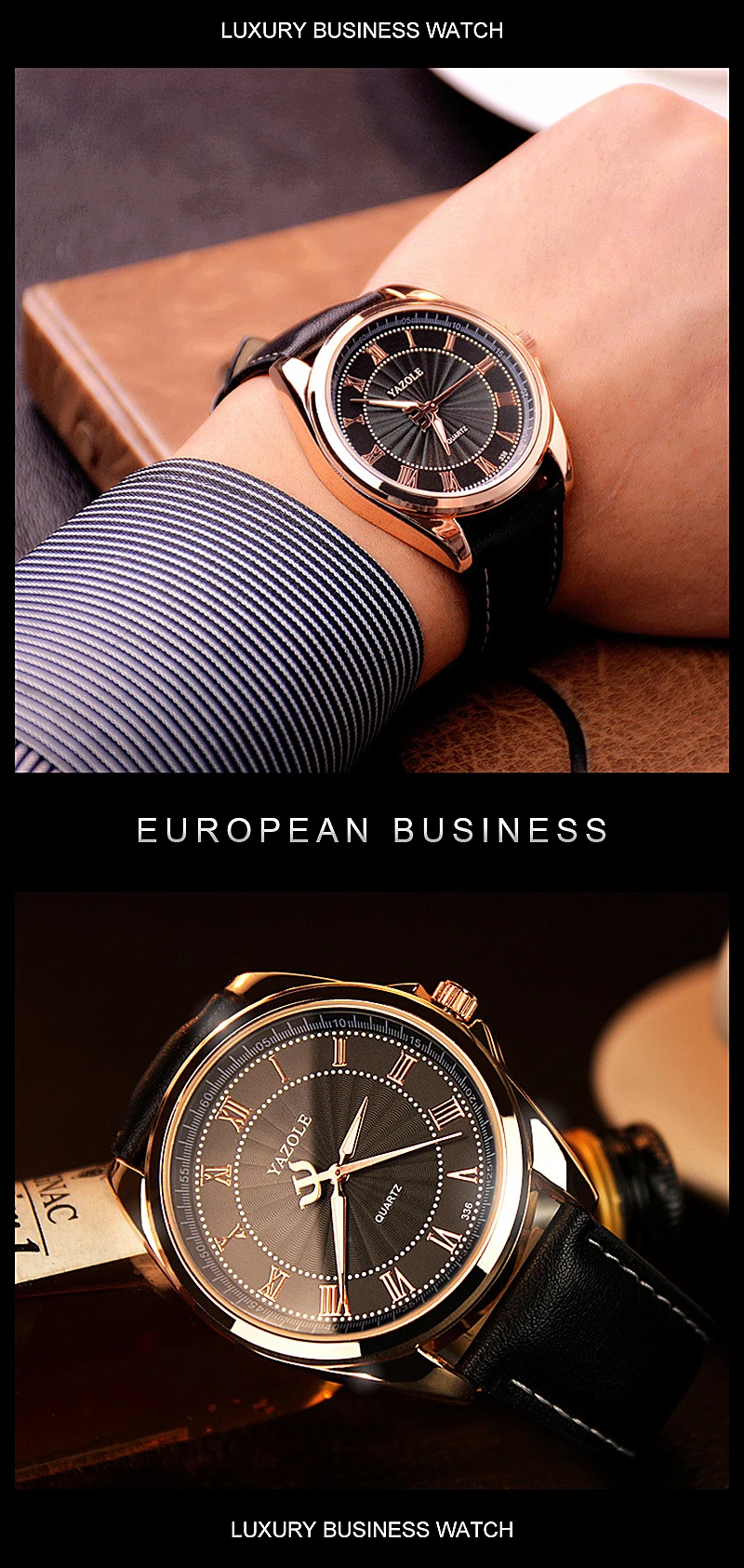 YAZOLE 336 мужские часы деловой моды кожаный ремешок кварцевые мужс...