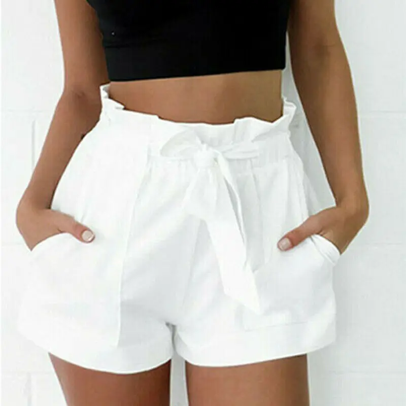 Популярные летние женские повседневные шорты 2019, женские пляжные бандажные шорты с высокой талией, модная женская уличная одежда