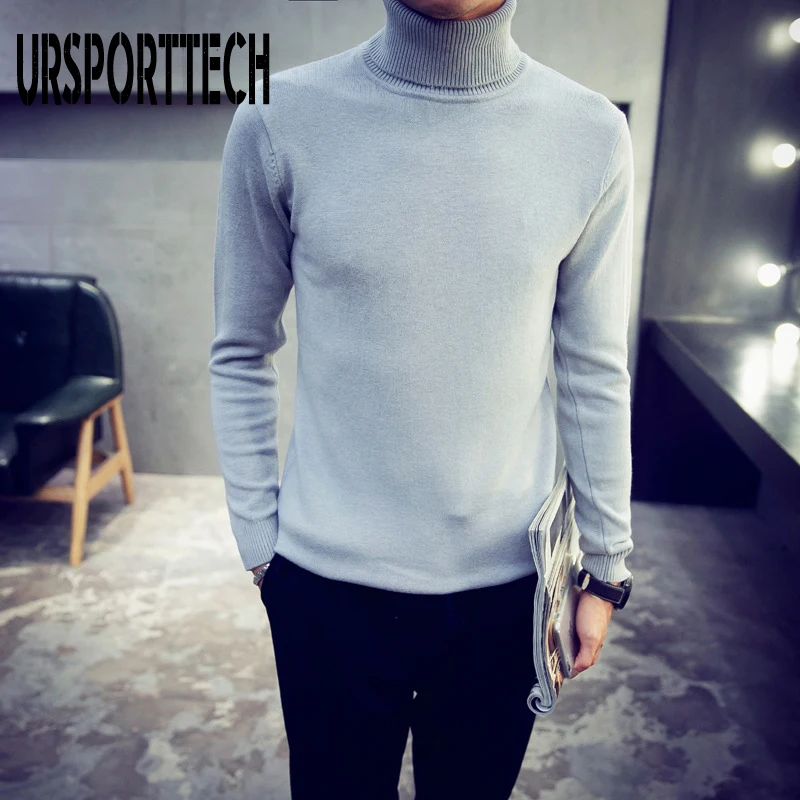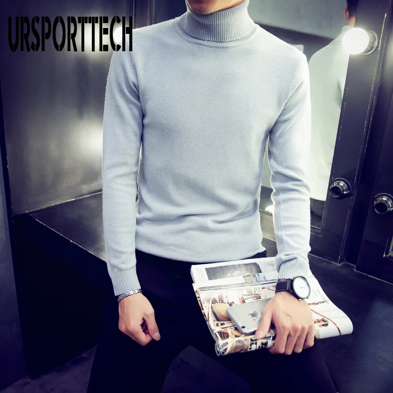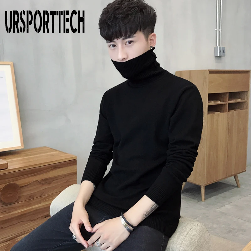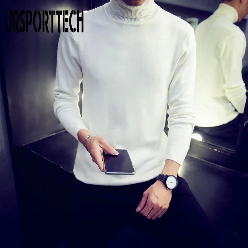Водолазка URSPORTTECH Мужская, Свитер оверсайз с высоким воротником, джемпер в Корейском стиле, белый цвет