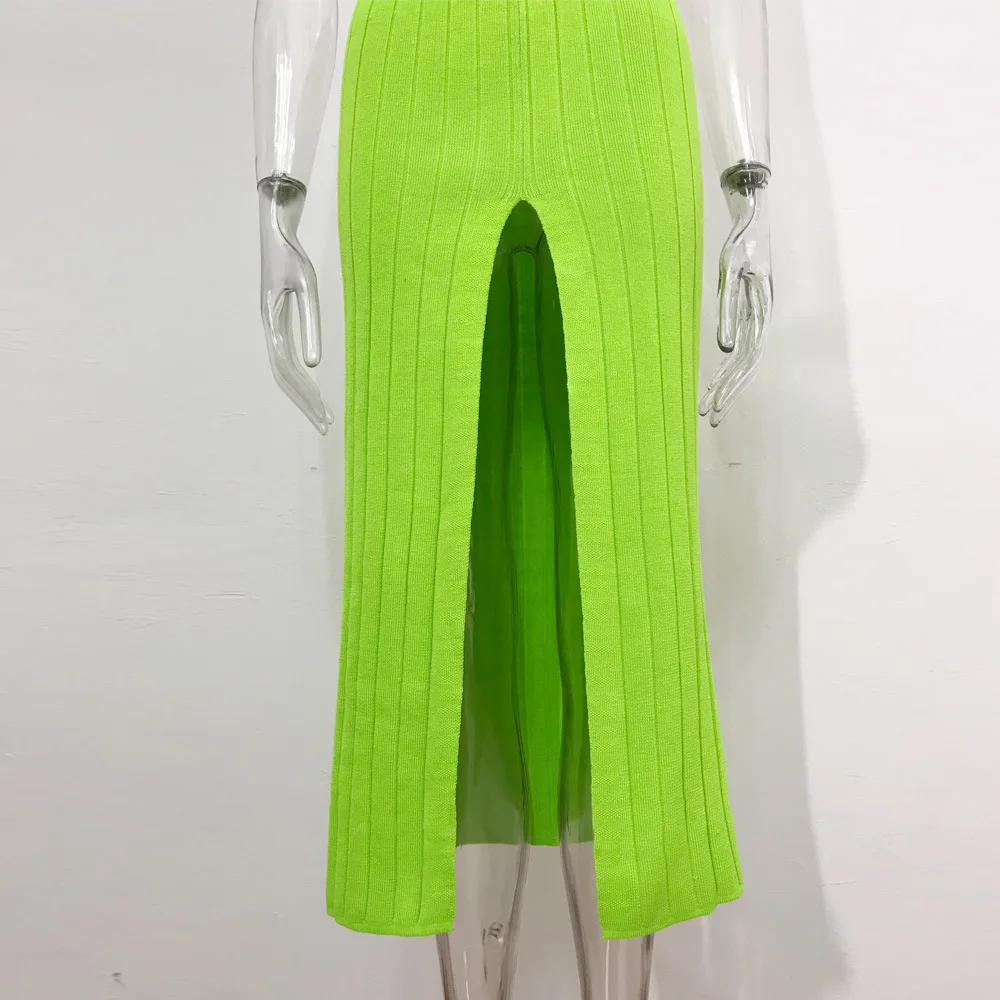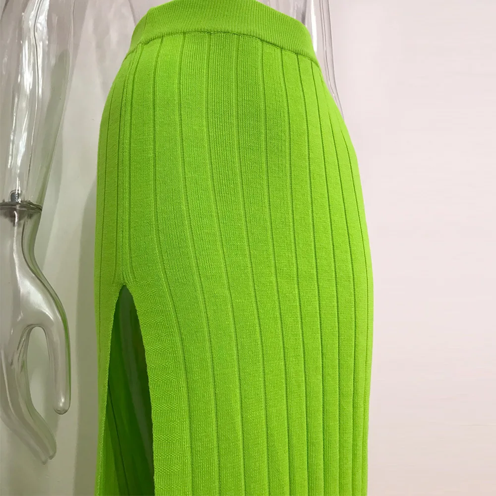 Юбка BKLD Женская трикотажная неоново-зеленая, с разрезом по бокам,...