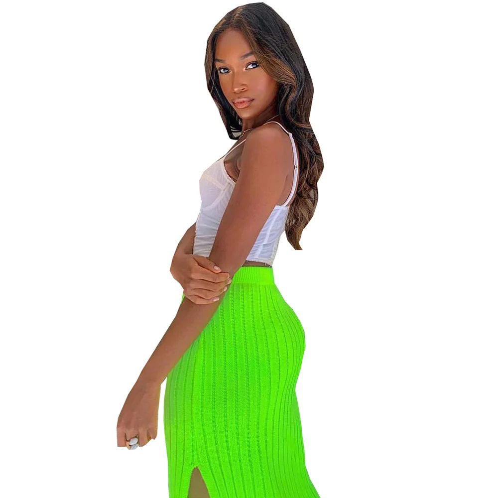Женская трикотажная юбка-карандаш OMSJ, неоново-розовая облегающая юбка средней длины с высокой талией для офиса, Осень-зима 2021