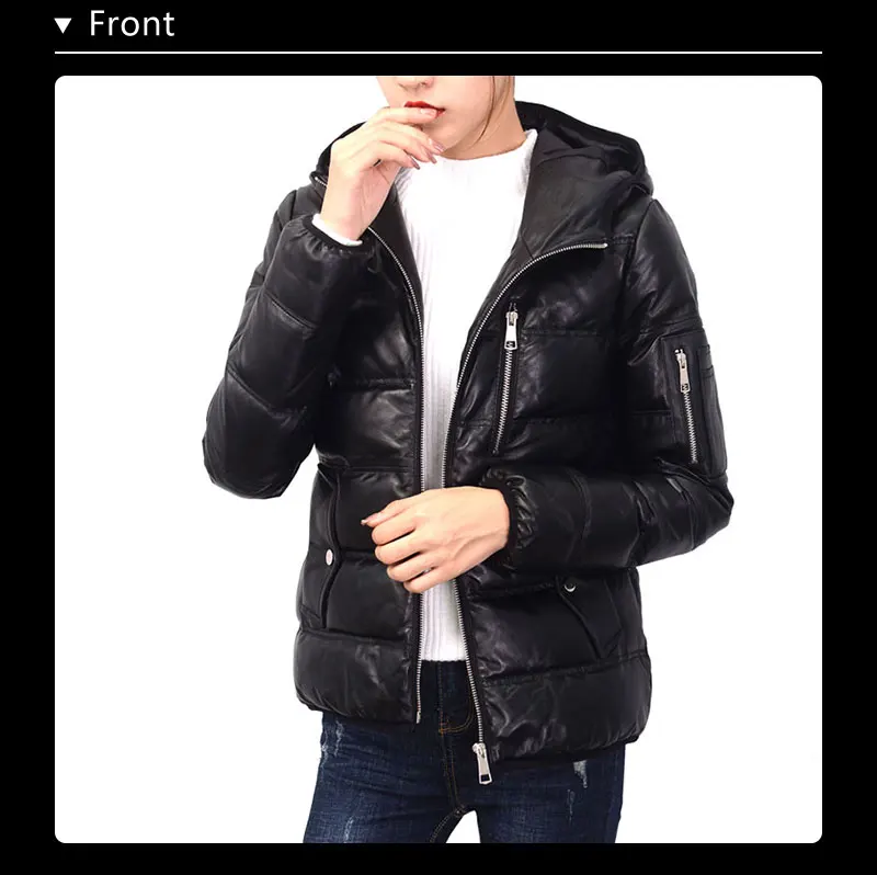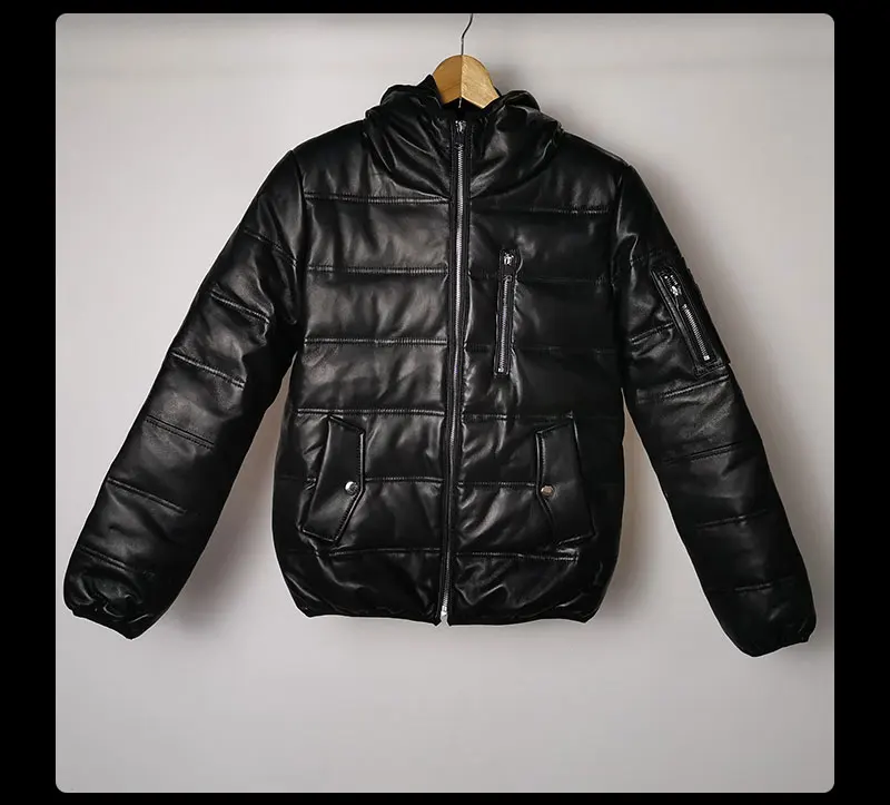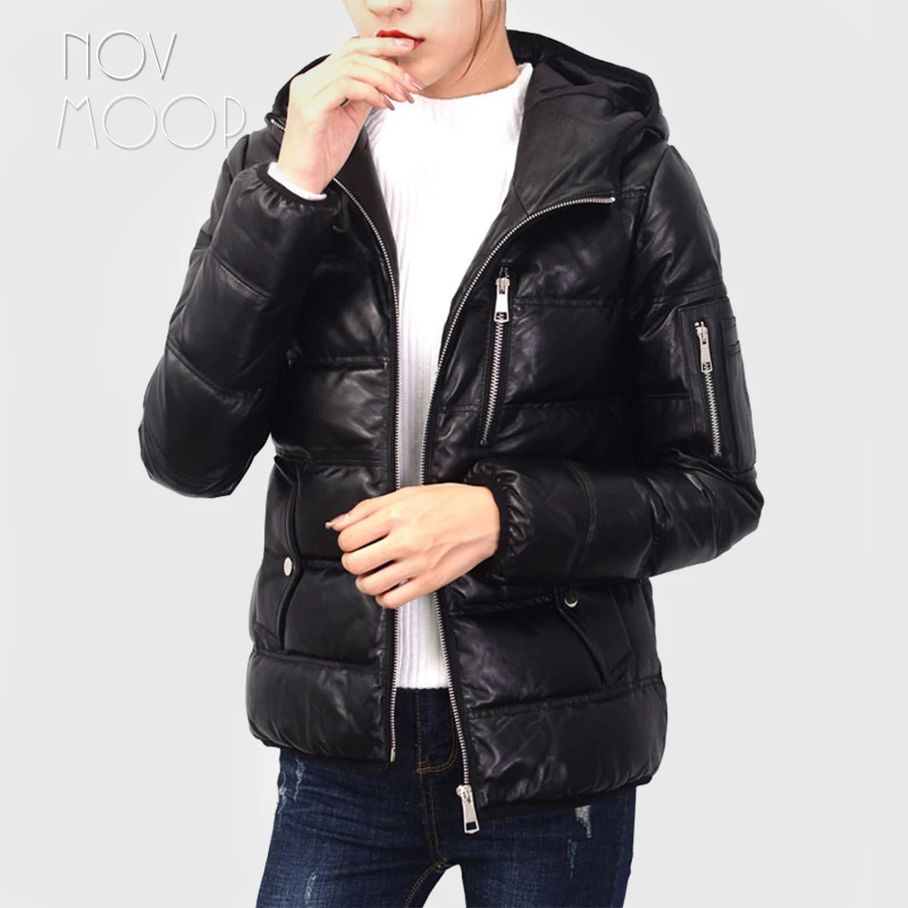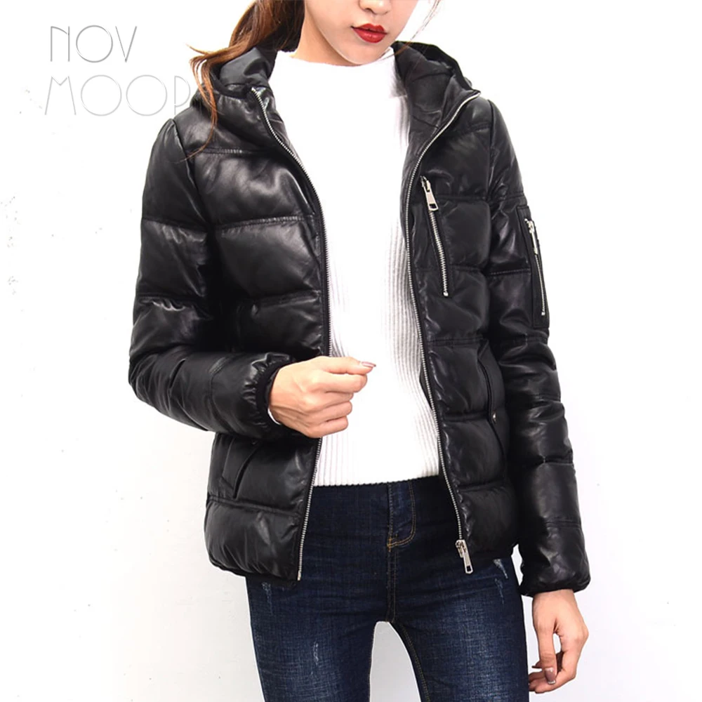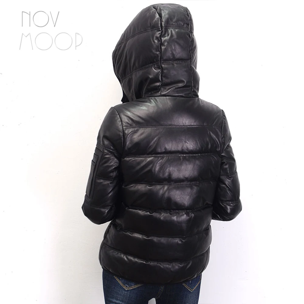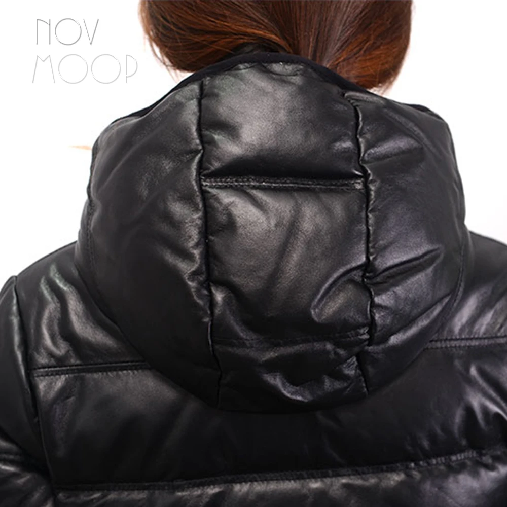 NovmoopЧерный пуховик с капюшоном на молнии, зимняя куртка из натуральной овечьей кожи, manteau femme kurtka damска LT2834
