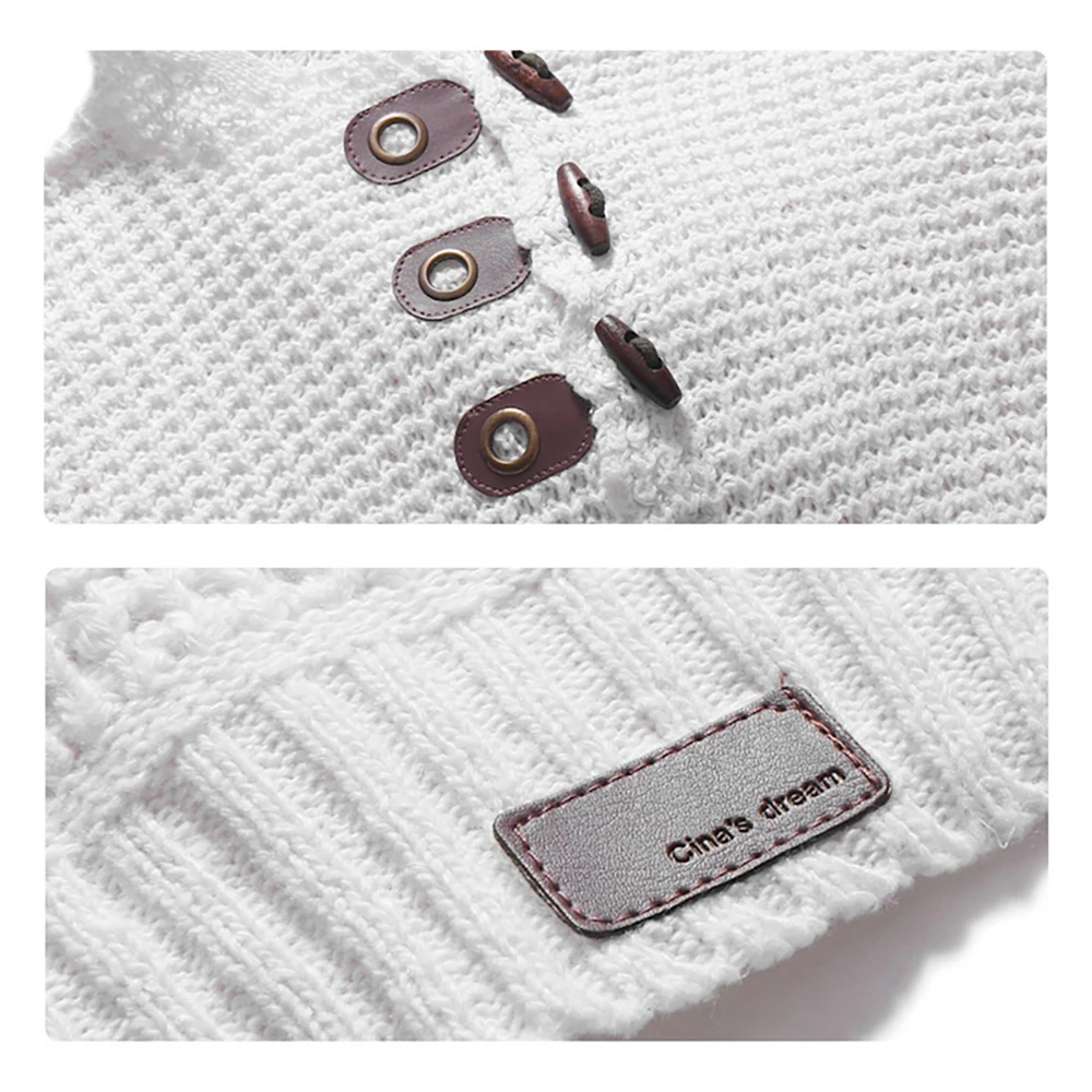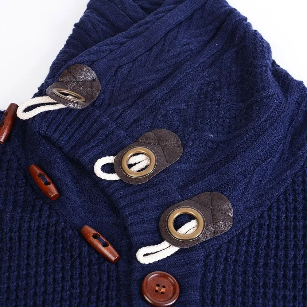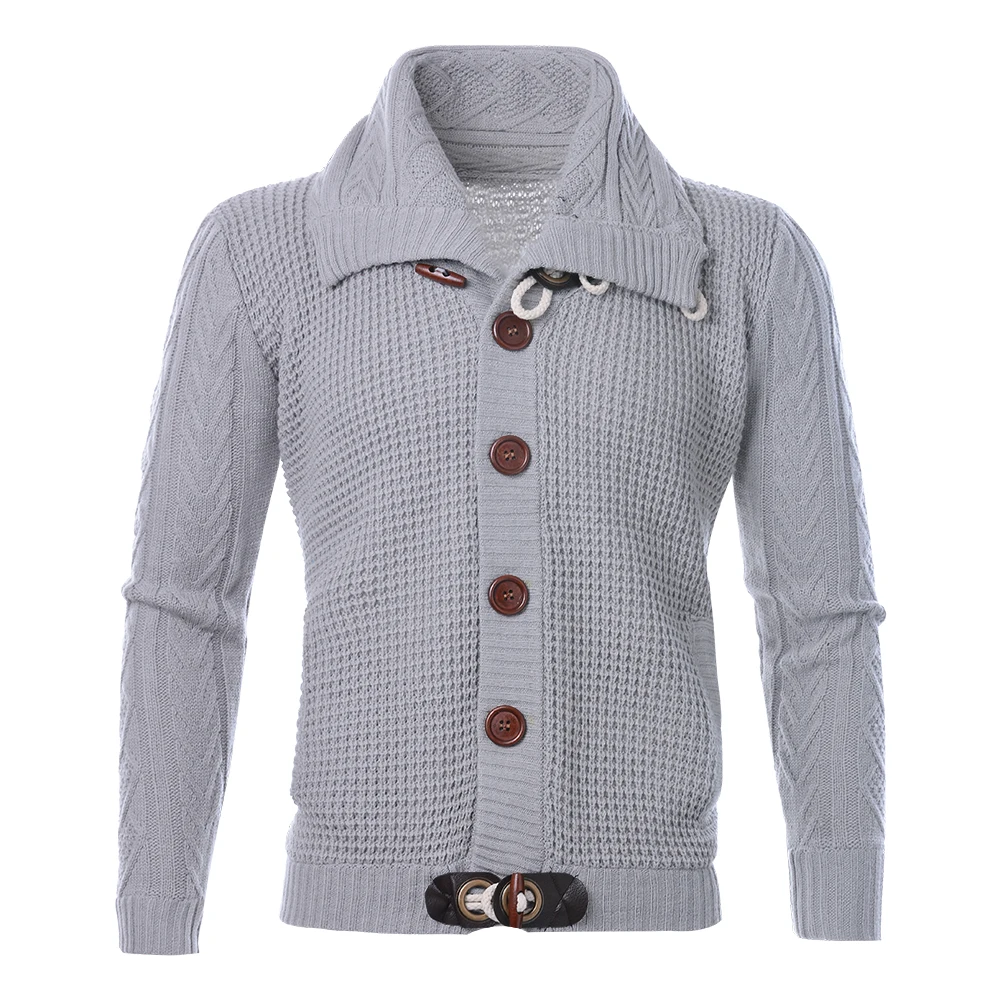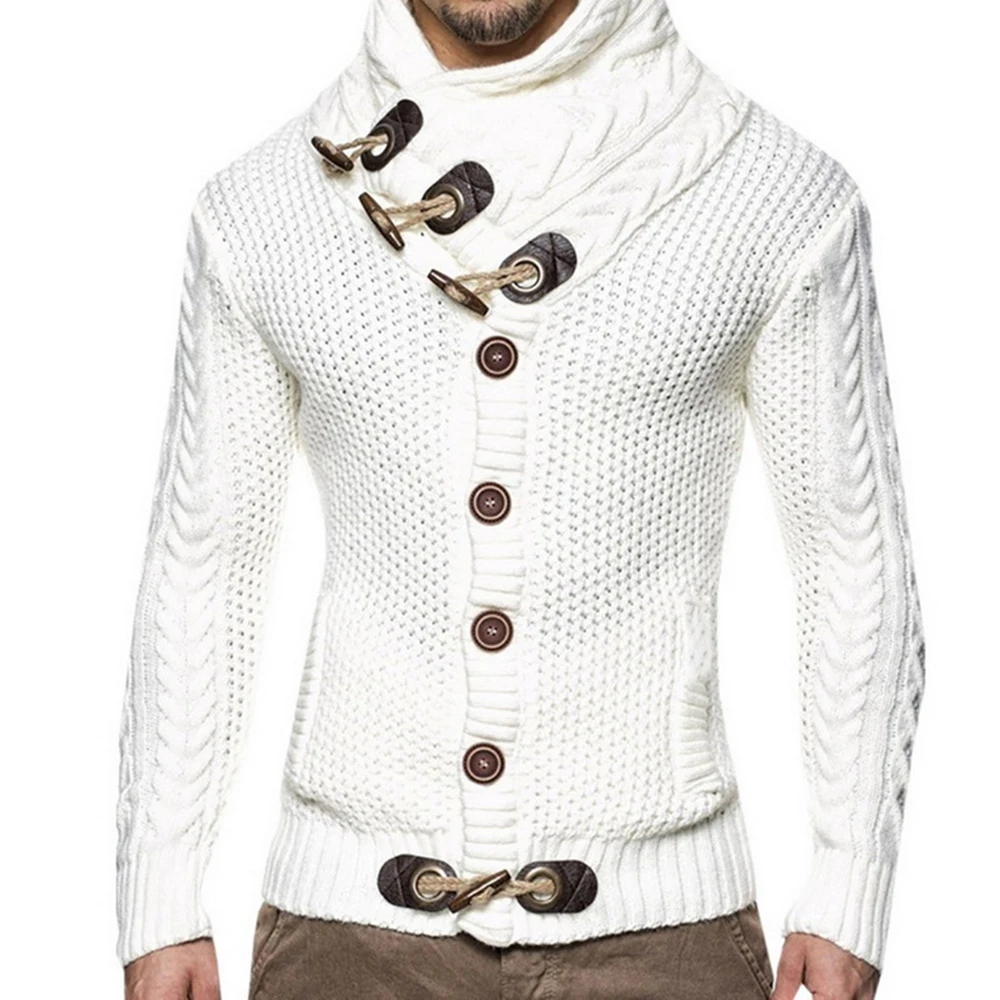 Мужской теплый свитер с высоким воротником, трикотажная пряжа, винтажный джемпер с пряжкой в виде рогов, плотный Повседневный Кардиган для зимы