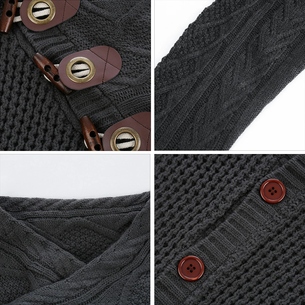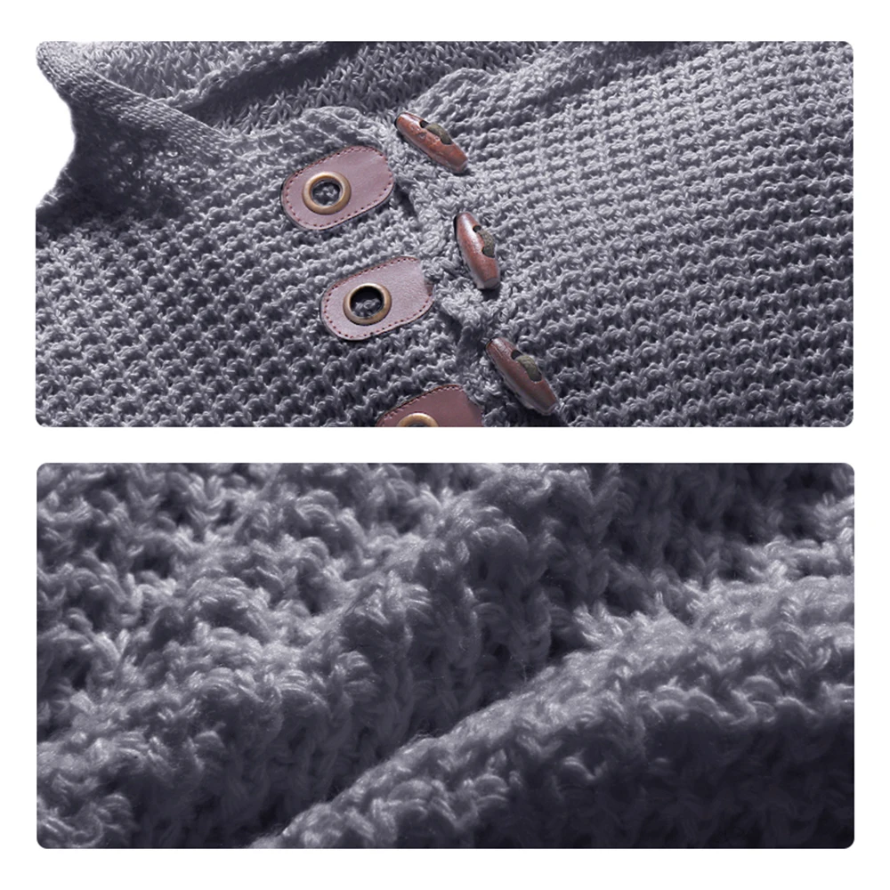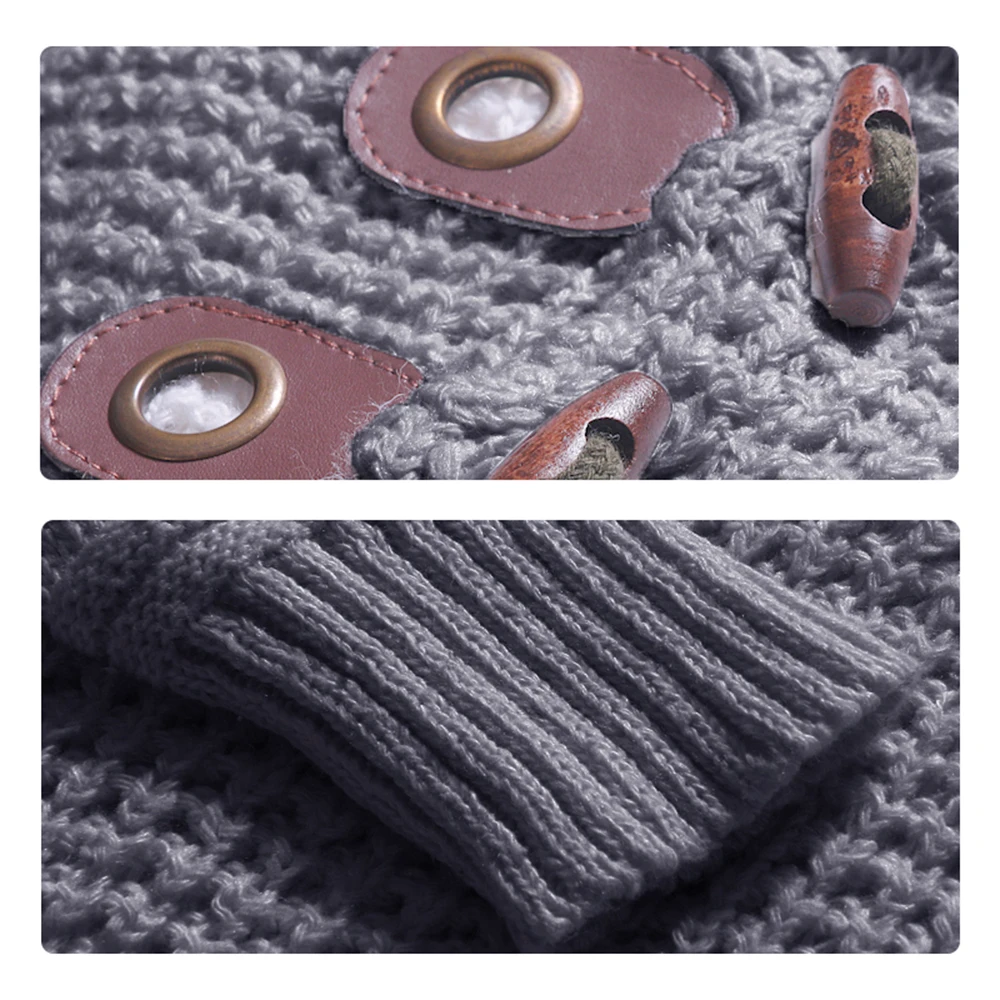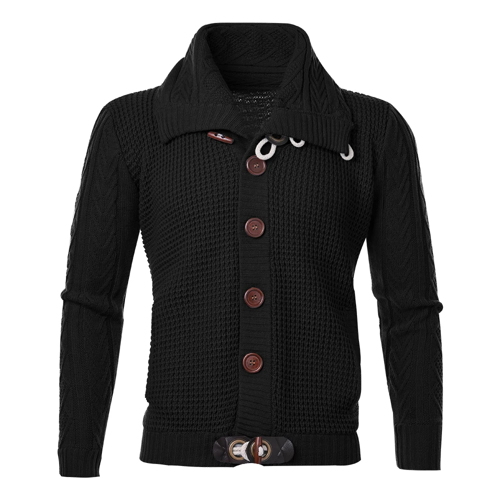 Мужской теплый свитер с высоким воротником, трикотажная пряжа, винтажный джемпер с пряжкой в виде рогов, плотный Повседневный Кардиган для зимы