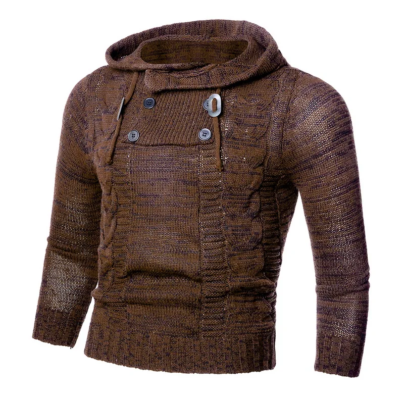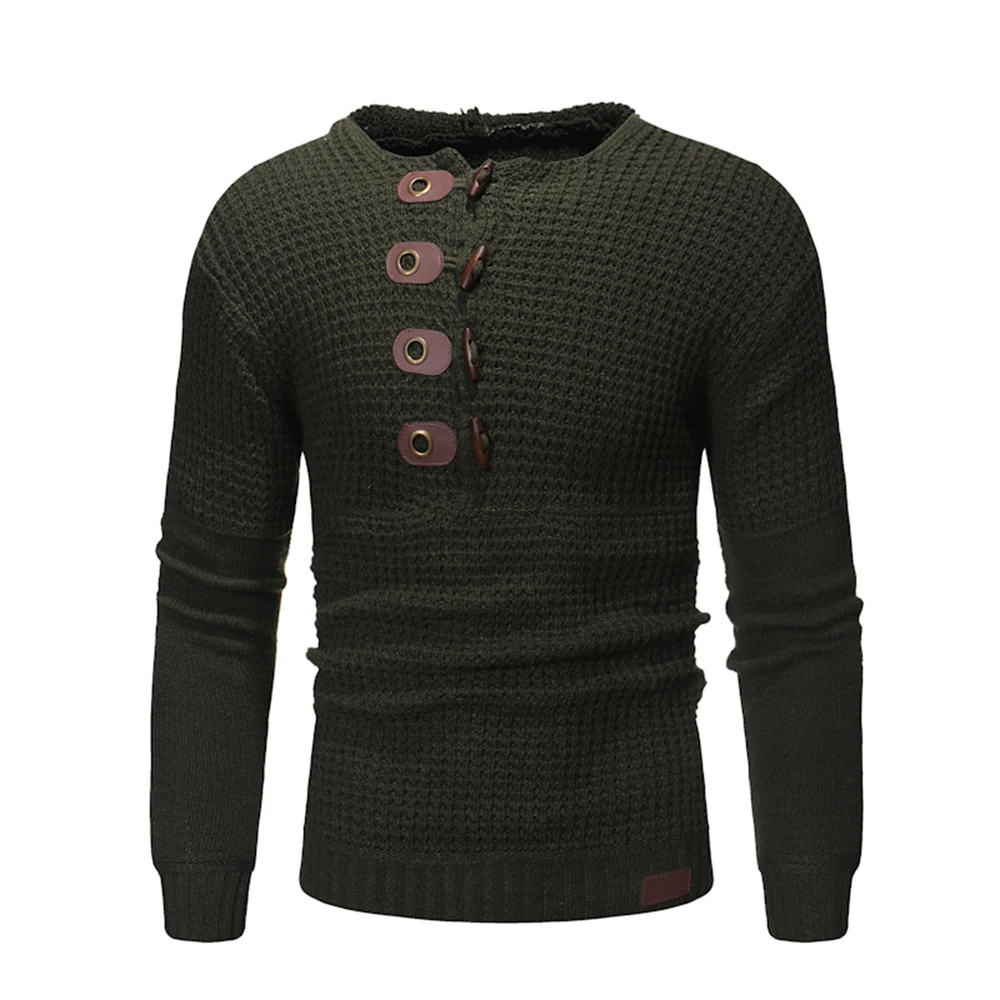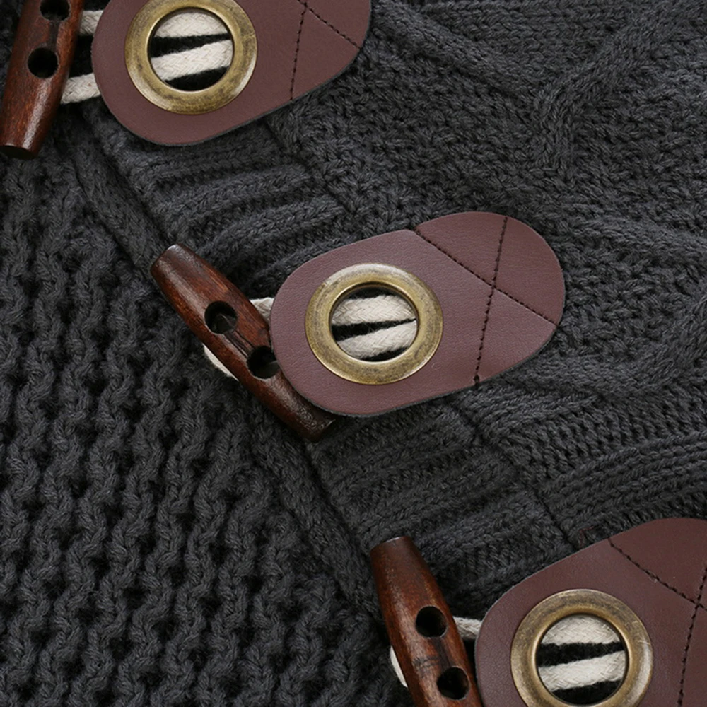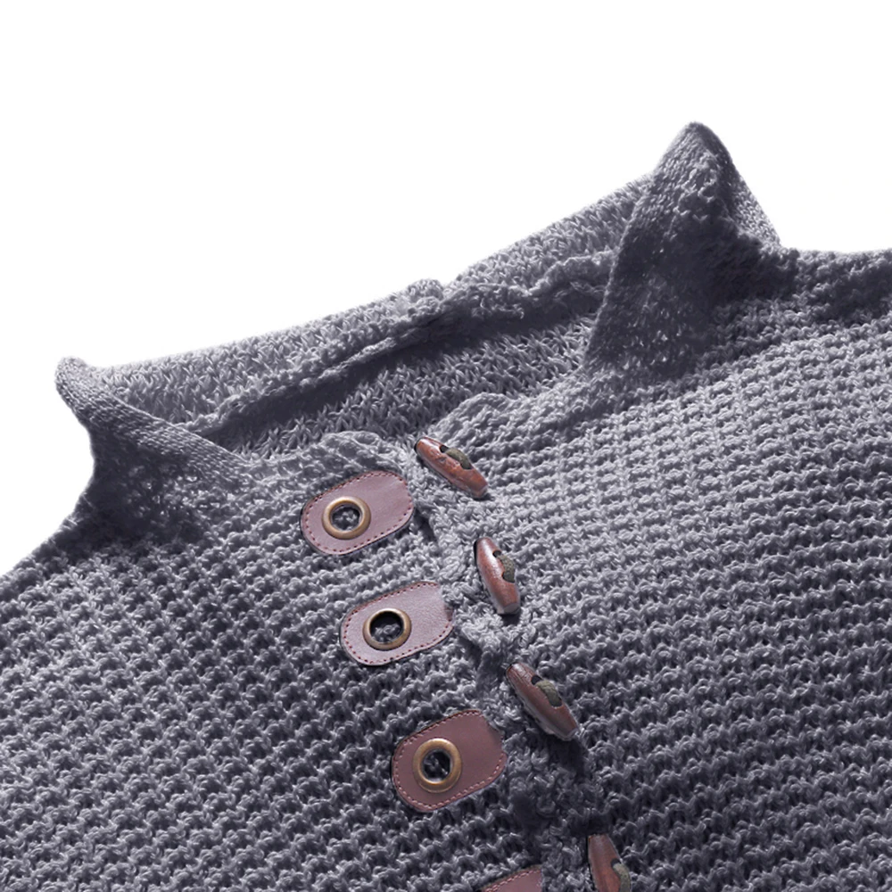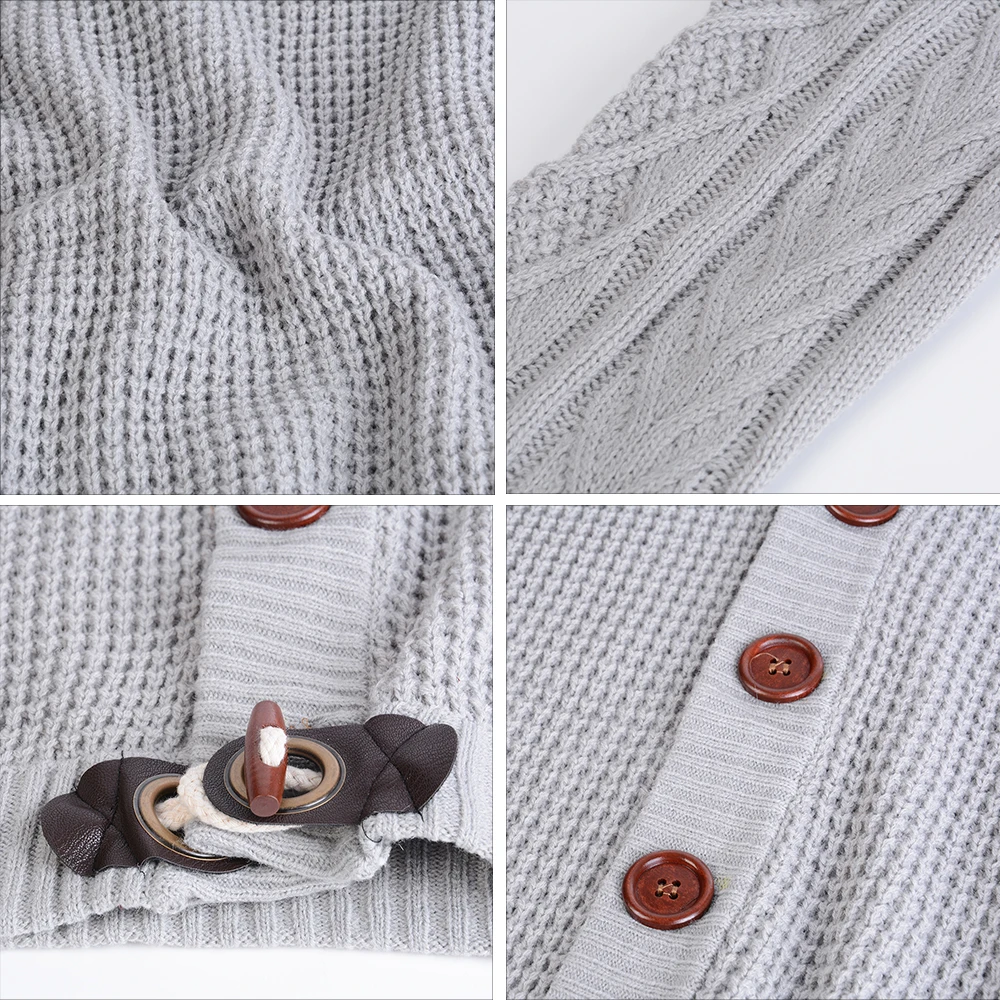 Мужской теплый свитер с высоким воротником, трикотажная пряжа, винтажный джемпер с пряжкой в виде рогов, плотный Повседневный Кардиган для зимы