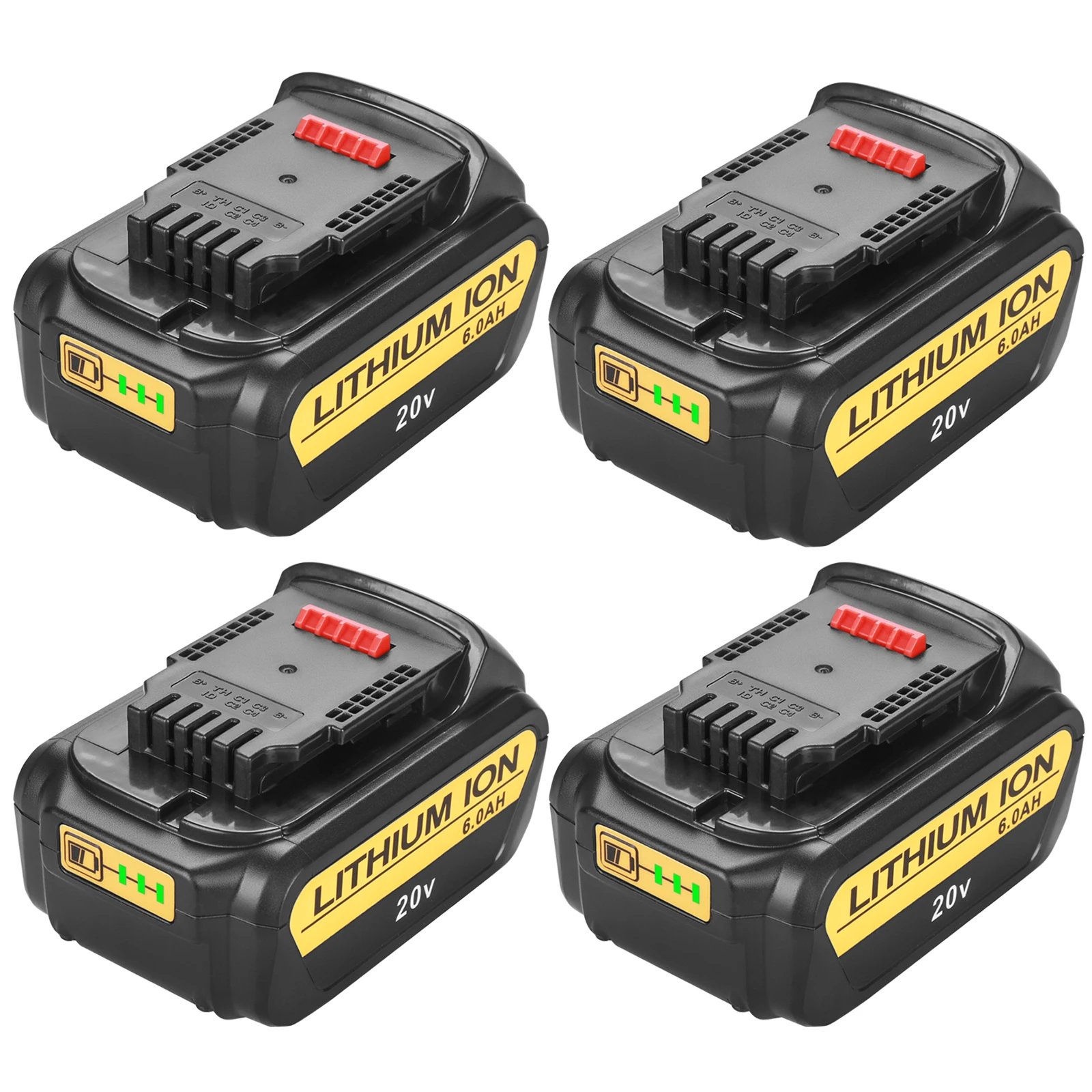 2 шт., аккумуляторные батареи для DeWalt DCB200 MAX, 20 в, 6000 мАч