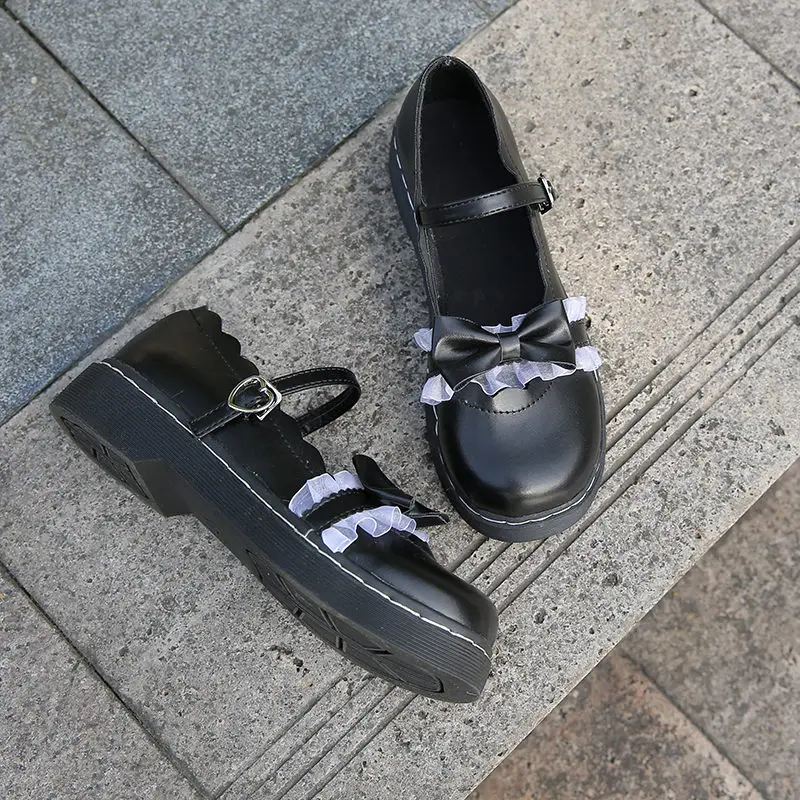 Милые туфли в стиле Лолиты; Женская обувь в стиле Харадзюку; Обувь в стиле Лолиты; Черные туфли на платформе с бантом; Женская обувь с круглым носком; Обувь принцессы; 2021
