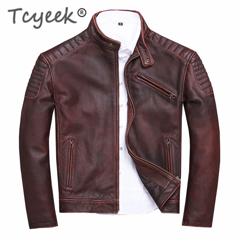 Tcyeek 100% натуральная кожаная куртка для мужчин модные из натуральной коровьей кожи кожаное пальто 2020 уличная Мужская мото байкерская куртка пальто тонкий Casaco U-1806
