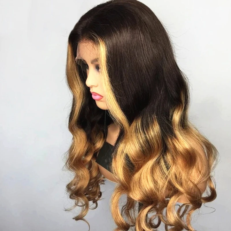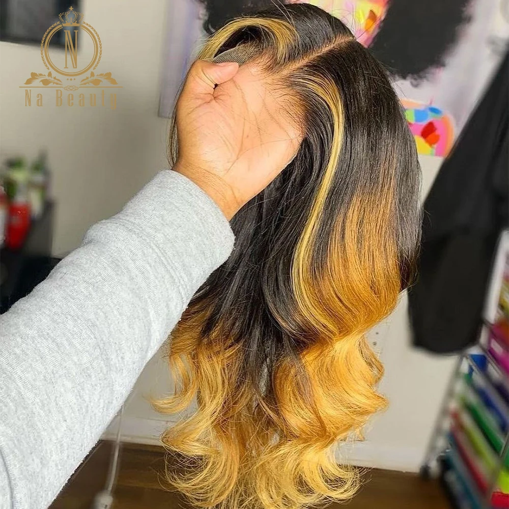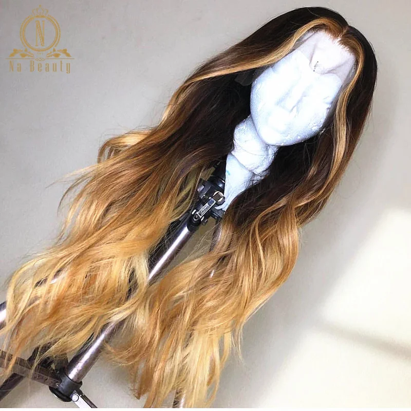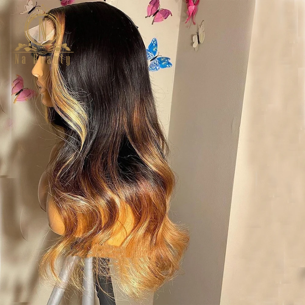Медовая Блондинка хайлайтер 13x 4 кружевные передние человеческие волосы парики HD Прозрачная Кружевная Передняя al парик волнистый Омбре цветной Nabeauty 150