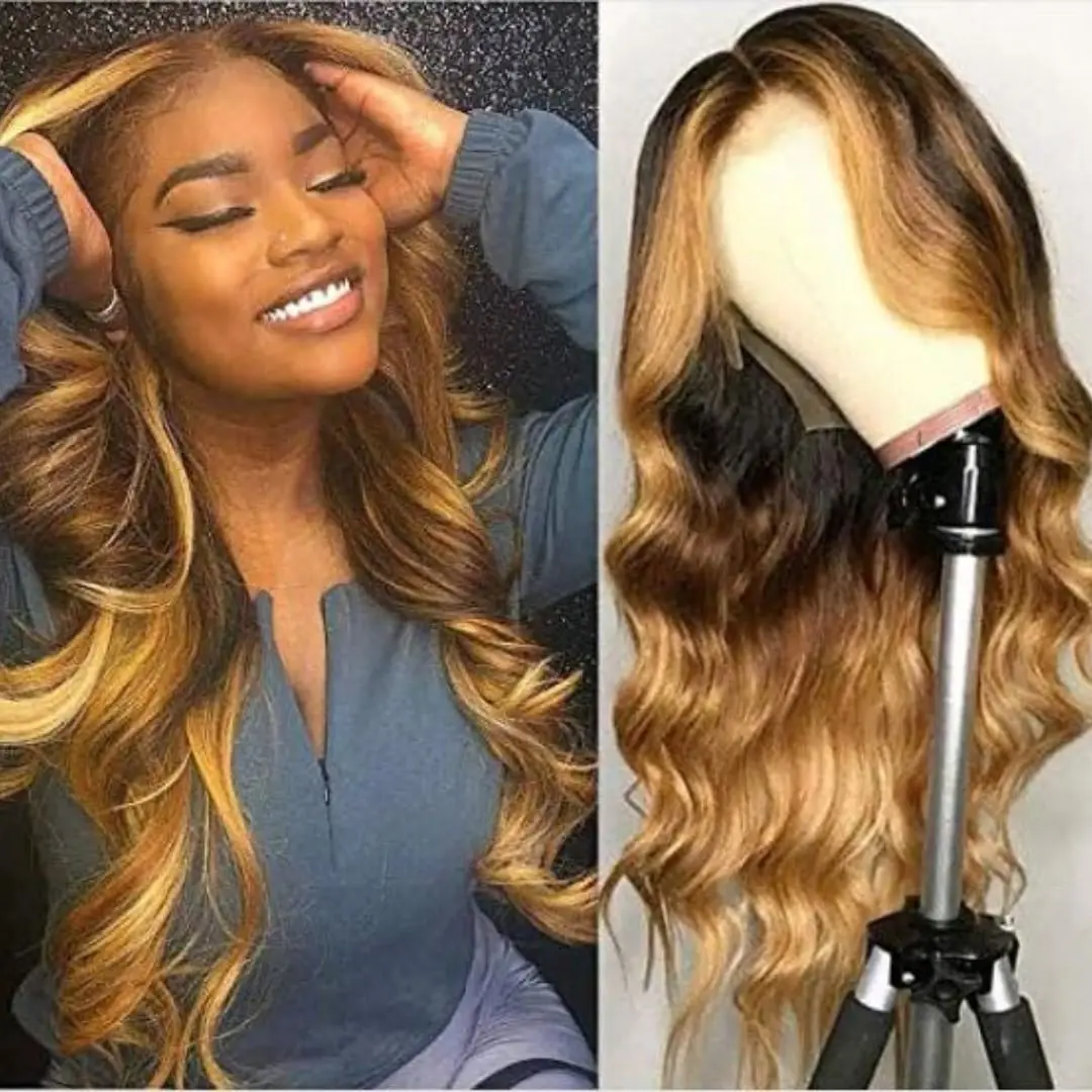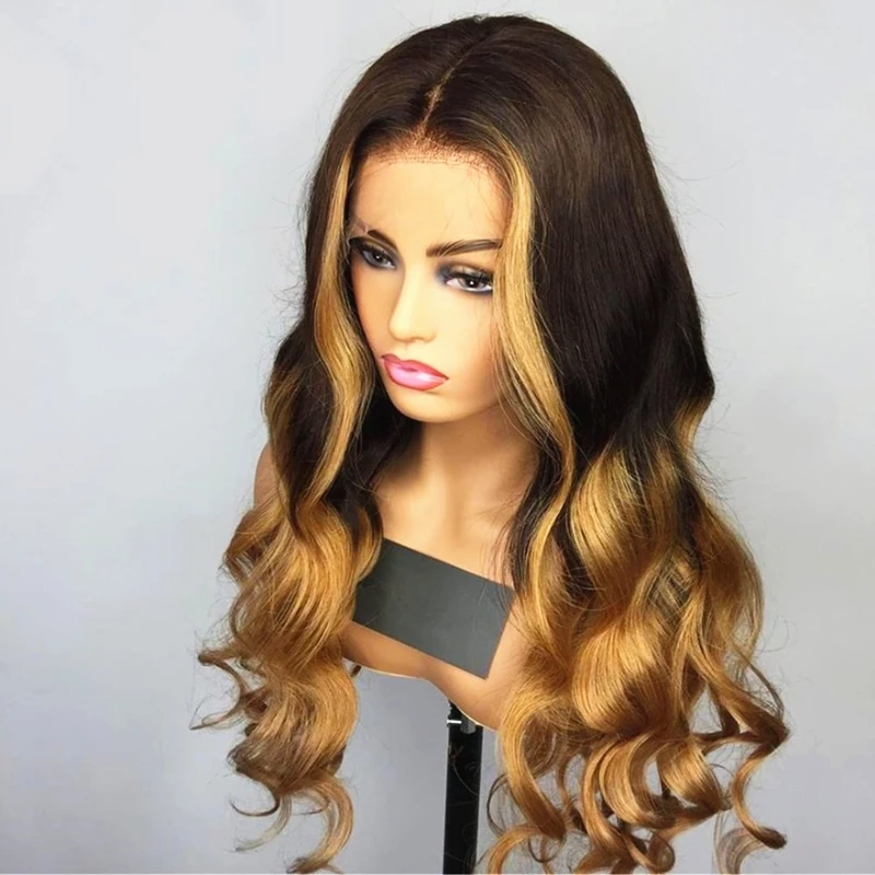 Объемная волна 13x6 Синтетические волосы на кружеве парики из натуральных волос на кружевной предварительно 1B 27 Мёд блондинка с эффектом деграде (переход от темного к длинные Синтетические волосы на кружеве al парик для женщина черный конец nabeauty