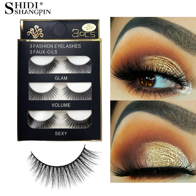 SHIDISHANGPIN 3 пары натуральных искусственных длинных ресниц для м...