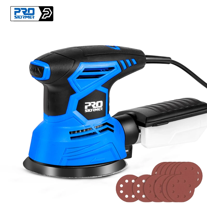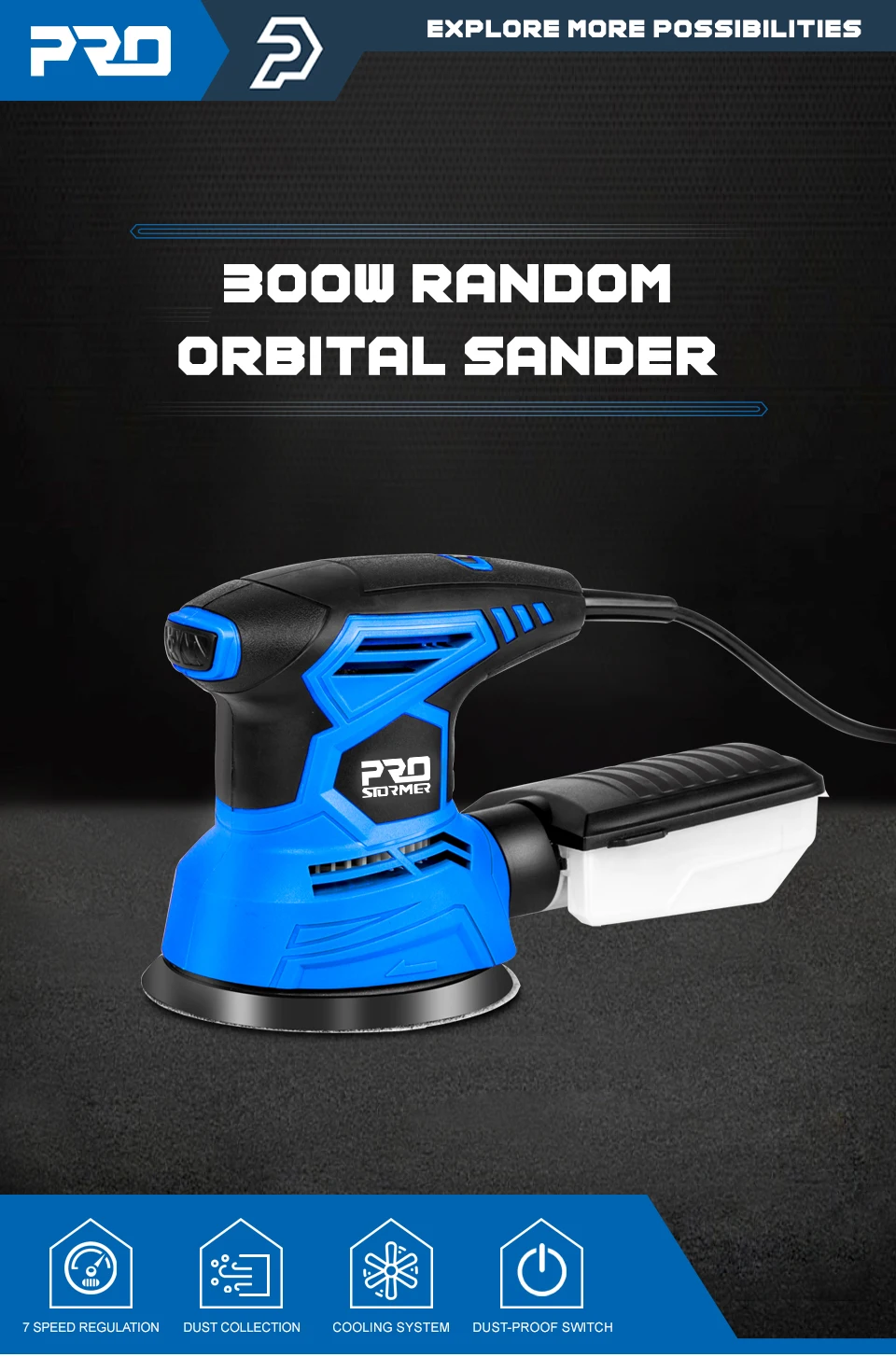 Электрическая круглая шлифовальная машина по дереву, 300 Вт, 7, регулируемая скорость, 13000 об мин, произвольная орбитальная шлифовальная машина, 21 шт., Наждачная бумага PROSTORMER