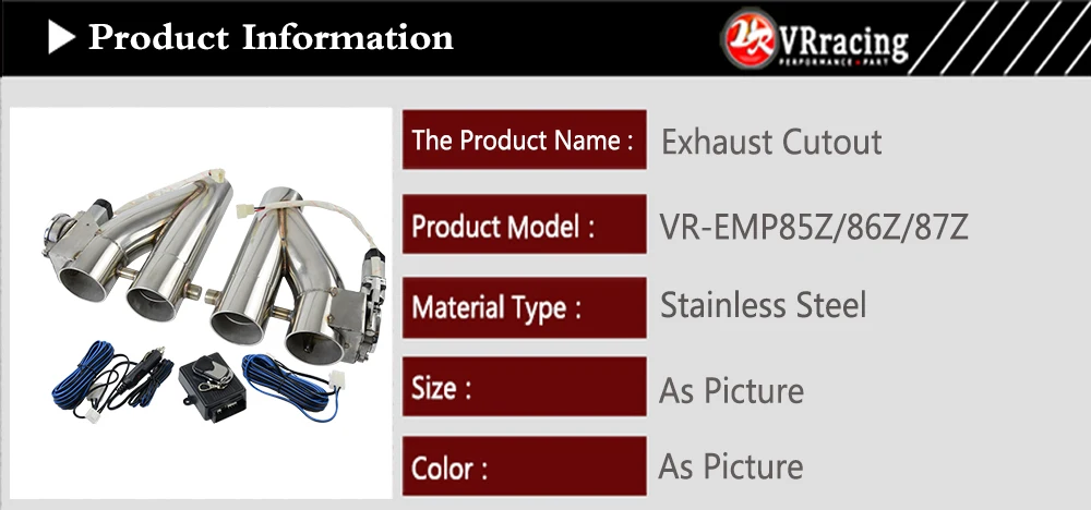 2 x Электрический выхлоп с двойным клапаном; 1 беспроводной пульт дистанционного управления 1 x y-адаптер 2 x Жгут проводов. (100% абсолютно новый никогда не использовался или не установлен)