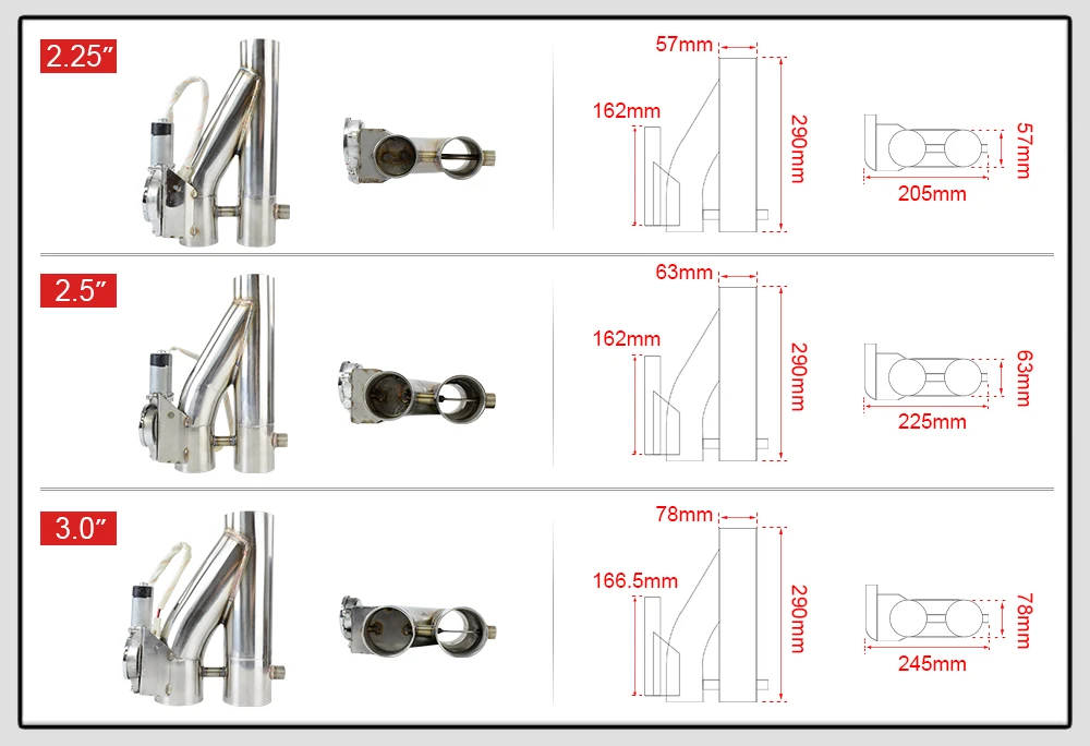 100% гарантия качества протестирована, более отзывчива, дешевле, проще в установке. 2,25 "/2,5"/ 3 "выхлопные трубы (не прямой болт на изделии). Конструкция мгновенно увеличивает мощность 20-30 лошадиных сил. Агрессивный глубокий звук обеспечивает плавный поток выхлопных газов. Электрически управляемые выпускные клапаны оттока, просто перевернув переключатель. IG сварной ЧПУ фланец машины для сопротивления давлению и коррозии.