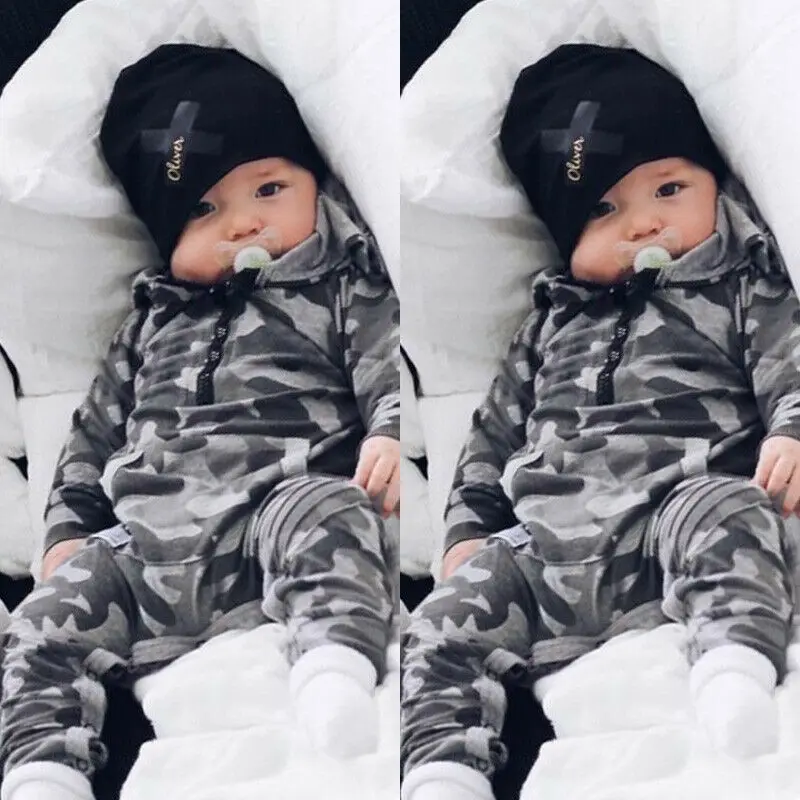 Весенне-осенний длинный камуфляжный комбинезон с длинными рукавами и капюшоном для маленьких мальчиков; Комбинезон для новорожденных; Теплая одежда для сна для малышей