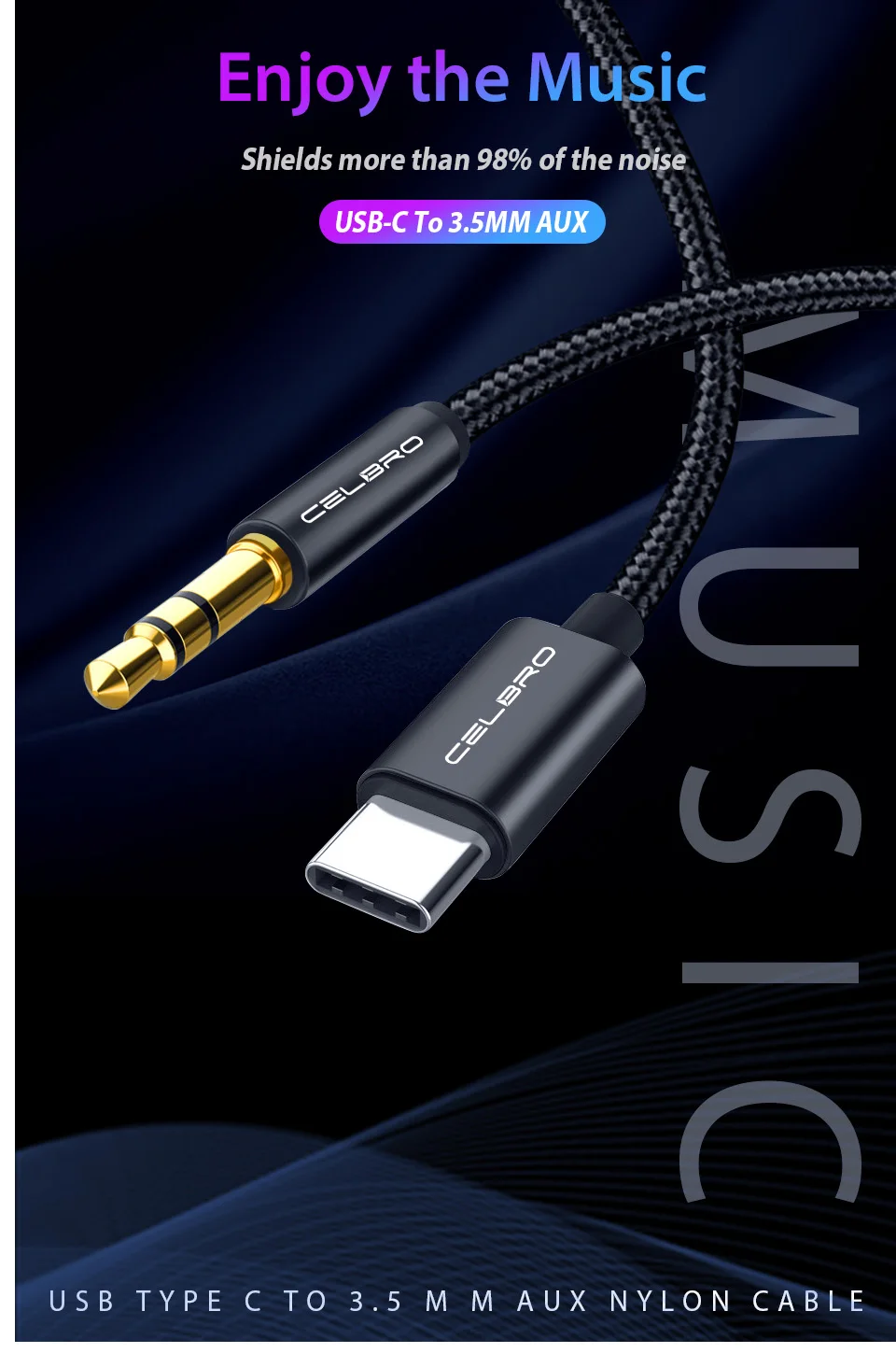 feature14New Portable Type-c to 3.5mm Audio Aux Cable 3.5mm