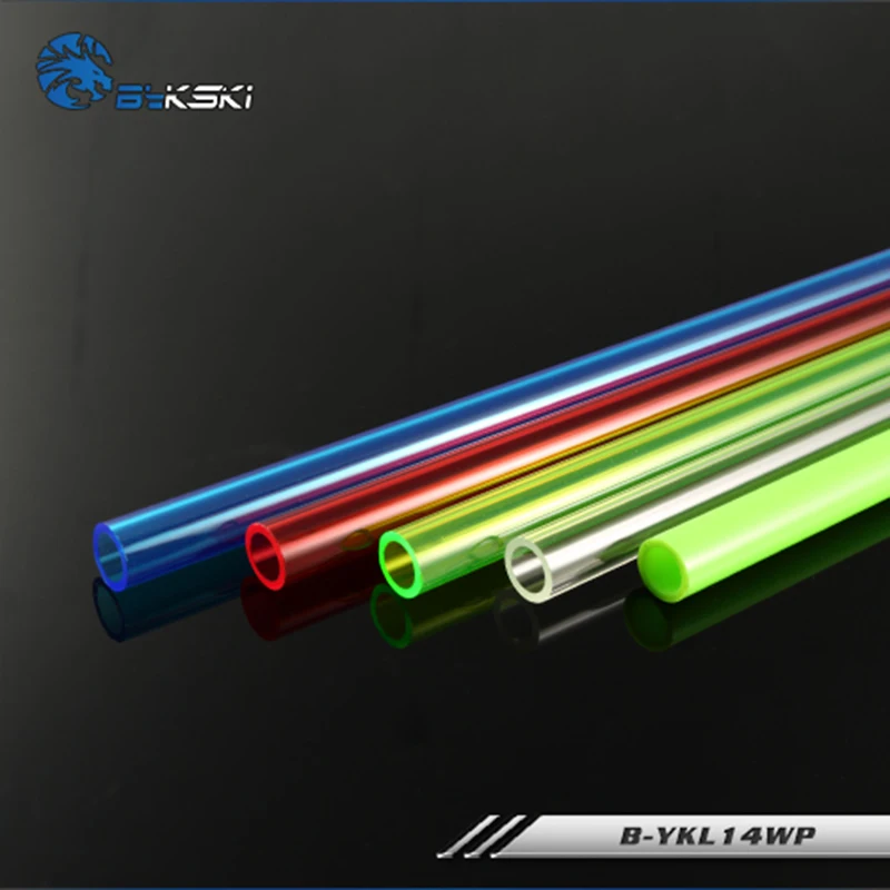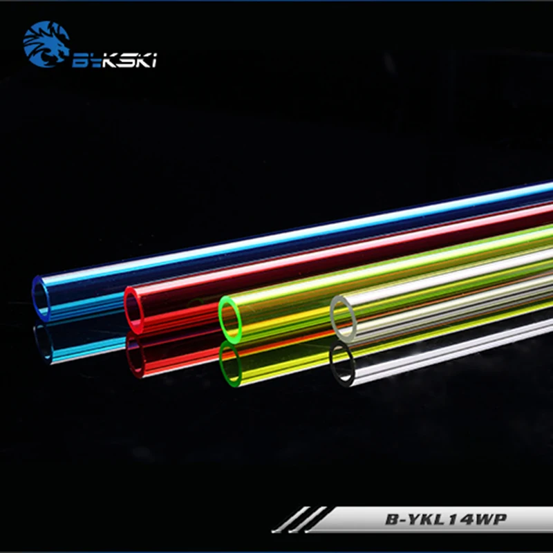 Bykski 2 шт.лот трубка для охлаждения воды жесткая трубка od14 мм + 2 мм толщина + 50 см длина Прозрачная красная синяя жесткая труба
