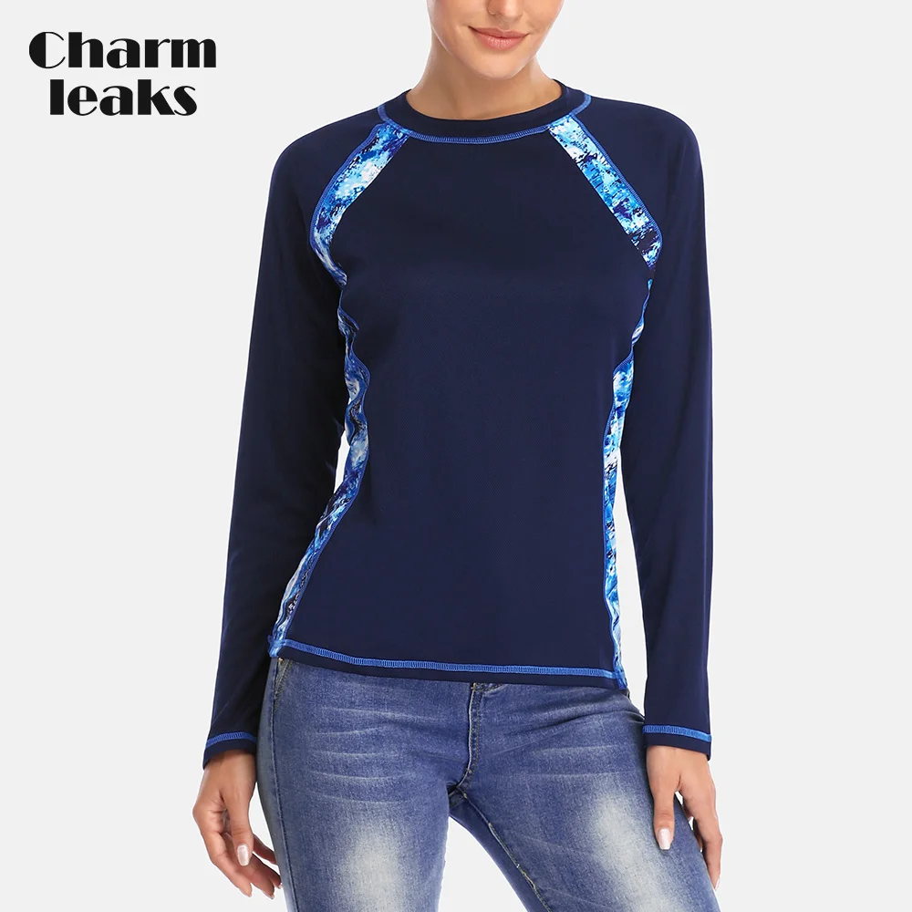Charmleaks Женская быстросохнущая рубашка с длинным рукавом Rashguard Топ для серфинга в стиле пэчворк Rashguard UPF50 + походные рубашки