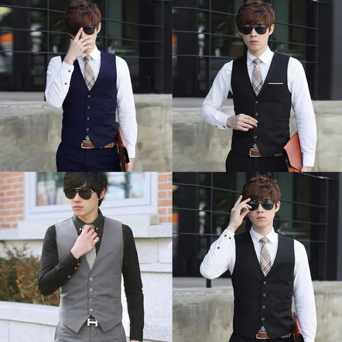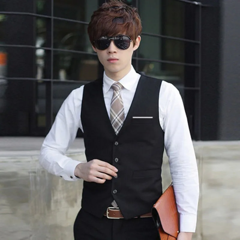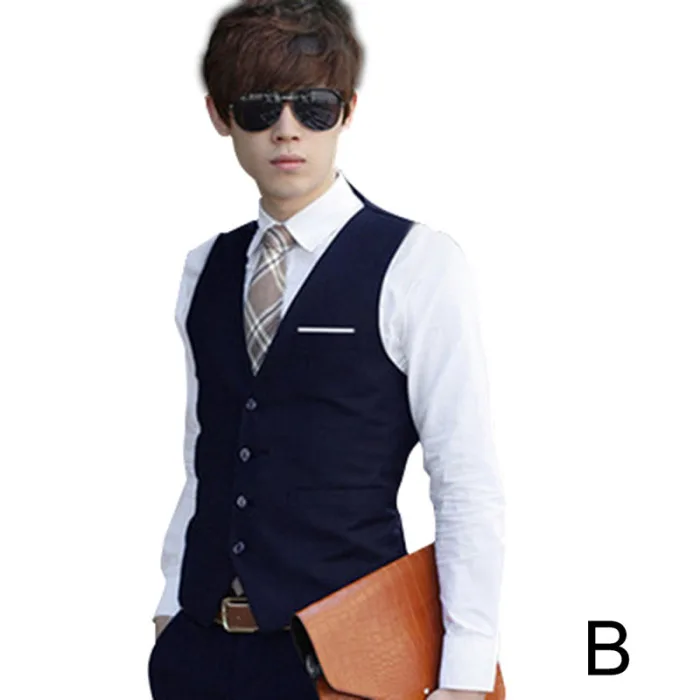 Тип одежды: мужской однотонный жилет, приталенный однобортный деловой Повседневный жилет на весну