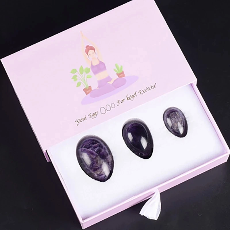 Натуральный Аметист Jade Yoni набор яиц для массажа Просверленный Кегель нефритовые яйца подтяжка вагинального тела Yoni массажный Кегель тренажер для мышц с коробкой