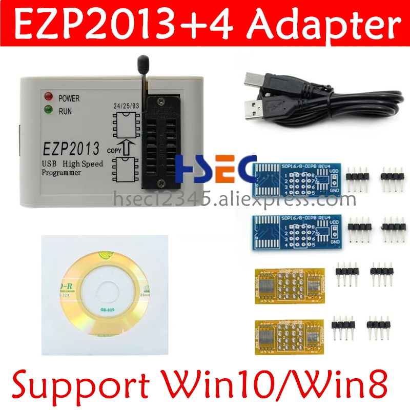 Новый высокоскоростной USB SPI программатор EZP2013 EZP2019 + 4 адаптера WSNO8 QFN8 EZP2010 2011 поддержка 24 25 26 93 EEPROM Flash Bios Chip