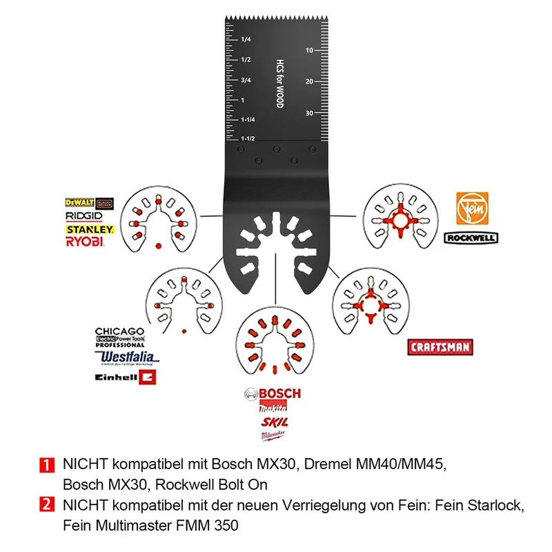 Один тип не подходит для мультикоптера de-walt. Вставная сторона торчит, поэтому я думаю, что мне нужно Измельчить ее с помощью шлифовщика. Все остальное хорошо подходит.