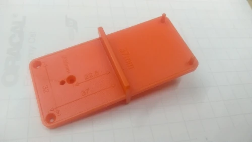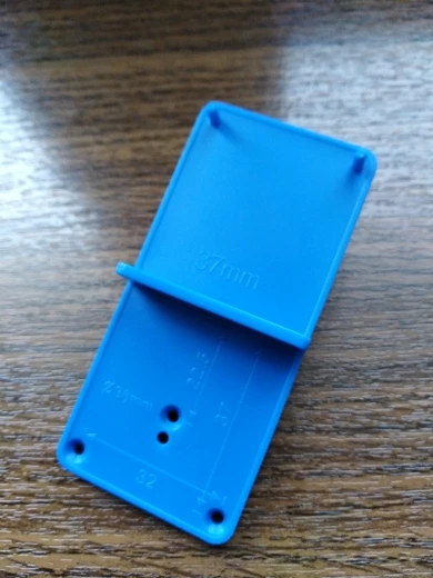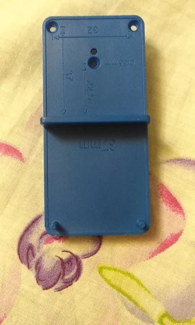 Описанию соответствует. Расстояние между крепёжными отверстиям по стандарту, 32 мм. Для центрального отверстия тоже всё точно. Петли по другому расстоянию крепятся. Наверное доработаю шаблон, чтобы за один раз всё сверлить.