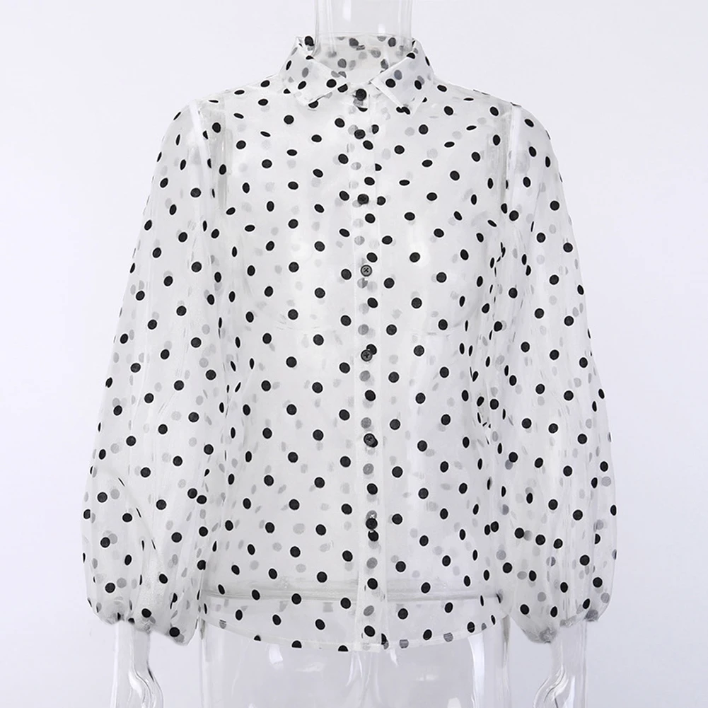 Британская женская летняя сетчатая прозрачная блузка в горошек с длинными рукавами, свободная Клубная блуза, футболка