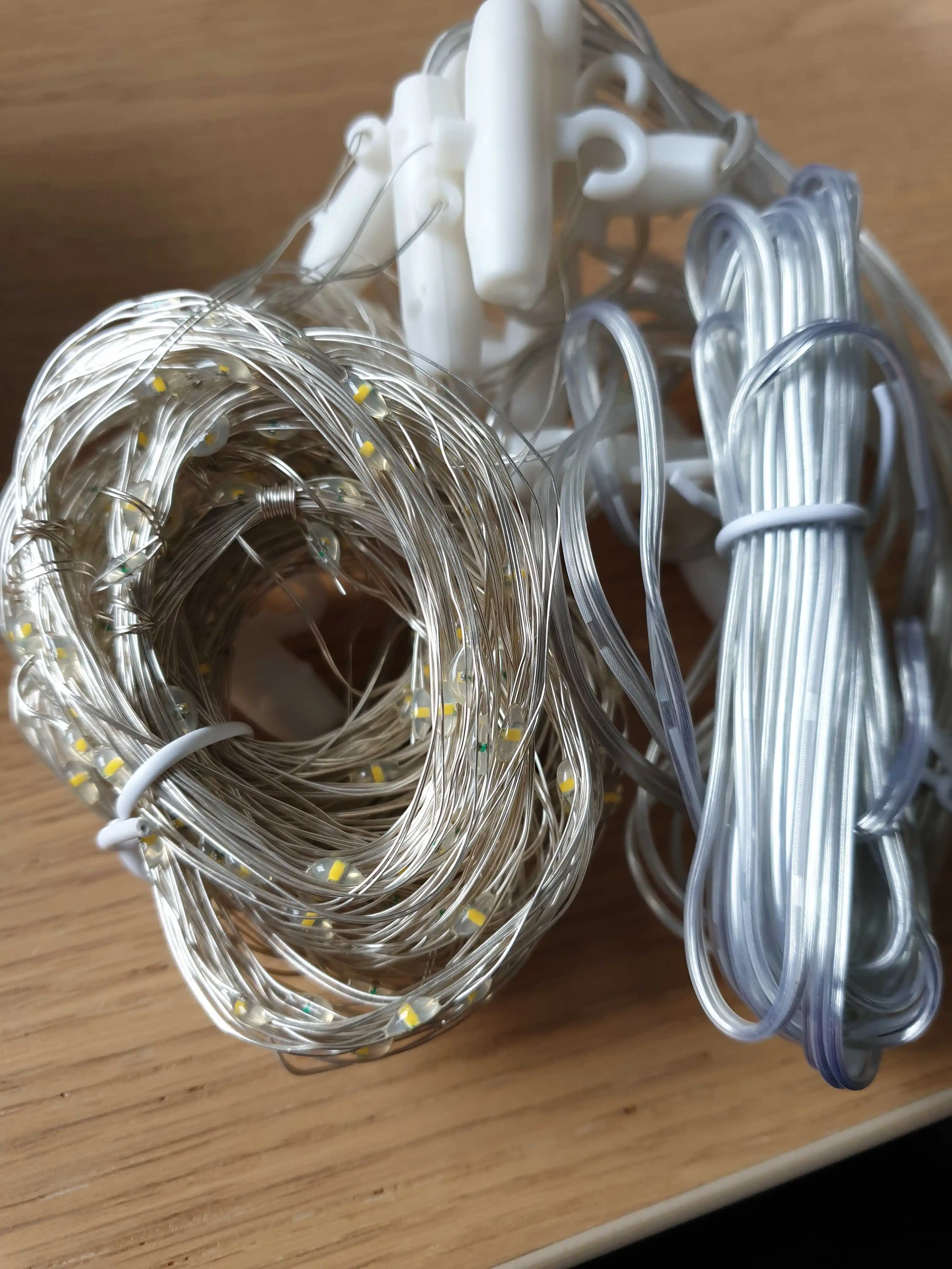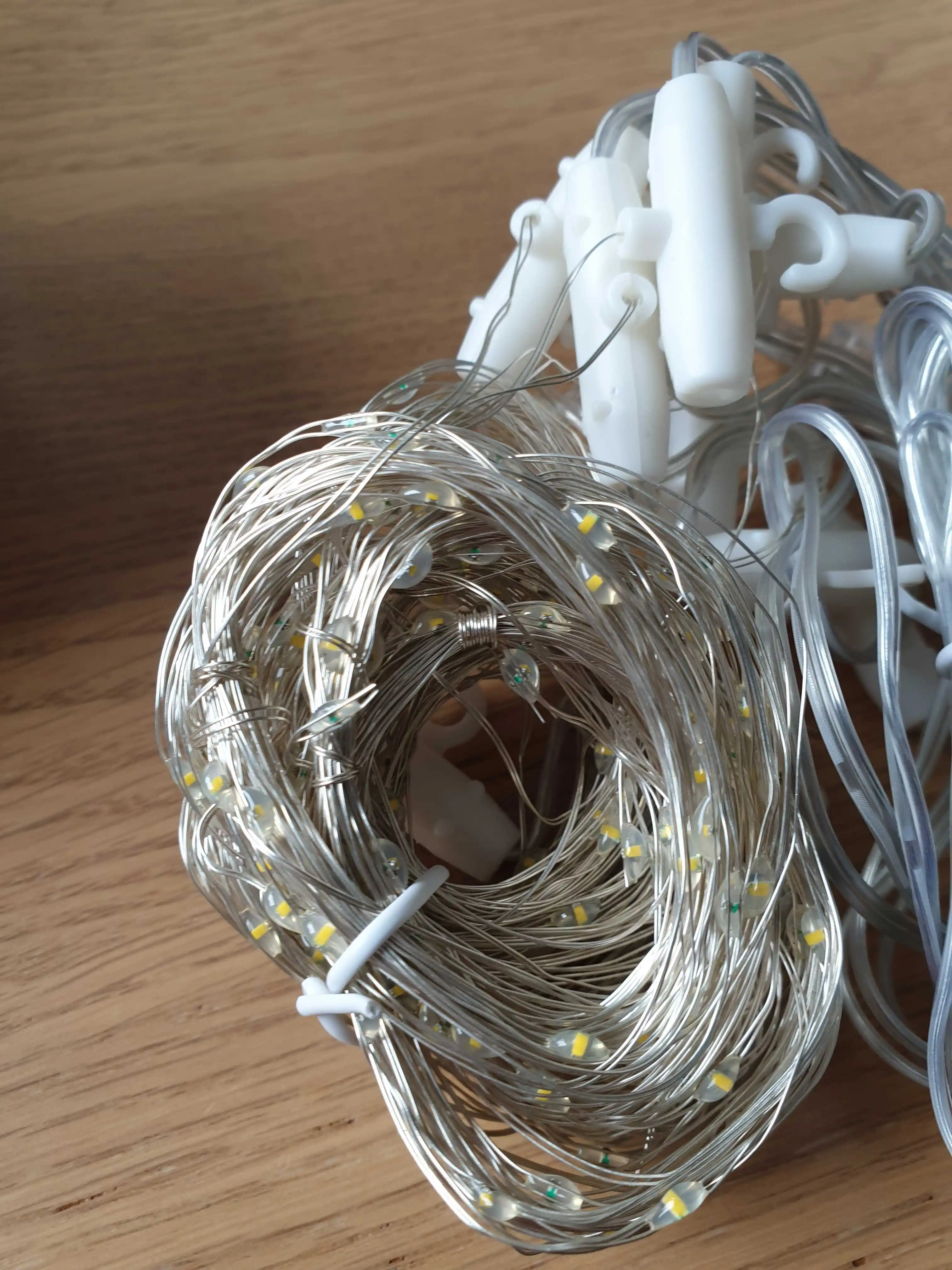 Я заказал 5 штук нейлоновых гирлянд, и я получил медный провод. Продавец сказал, что у него нет нейлоновой проволоки на складе и вместо нее отправил мне медную проволоку, но он не сообщал мне об этом. Очень сложно связаться с продавцом, он отвечает один раз в 2 дня.