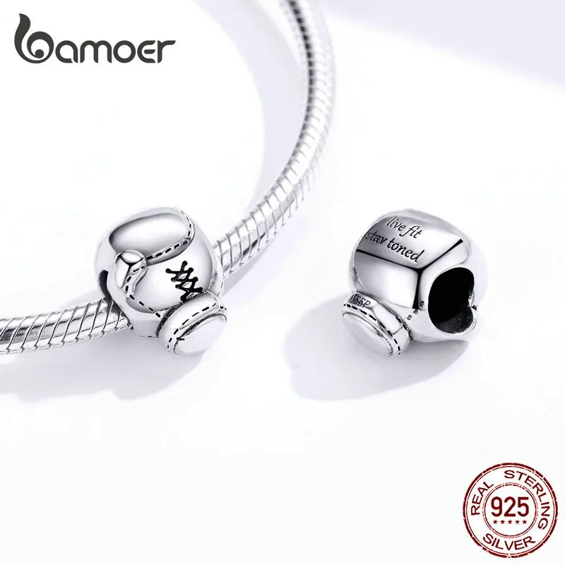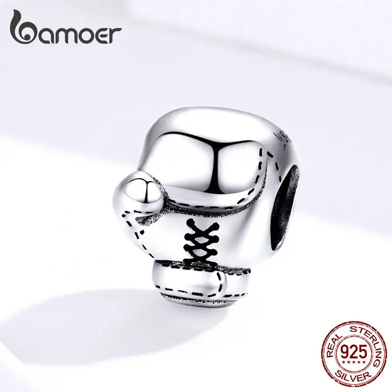 Bamoer Спорт Боксерские металлические бусины серебро 925 Шарм оригинальный браслет или браслет Европейский роскошный бренд ювелирные изделия SCC1325