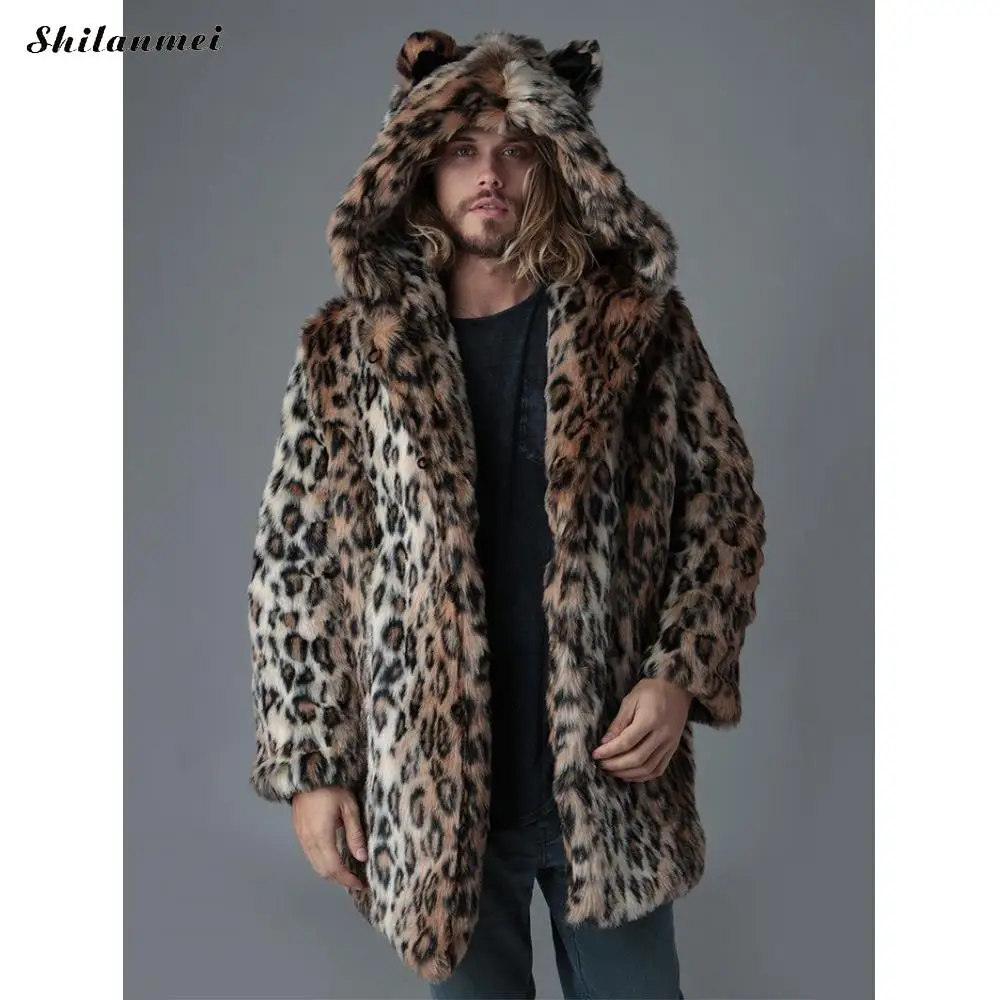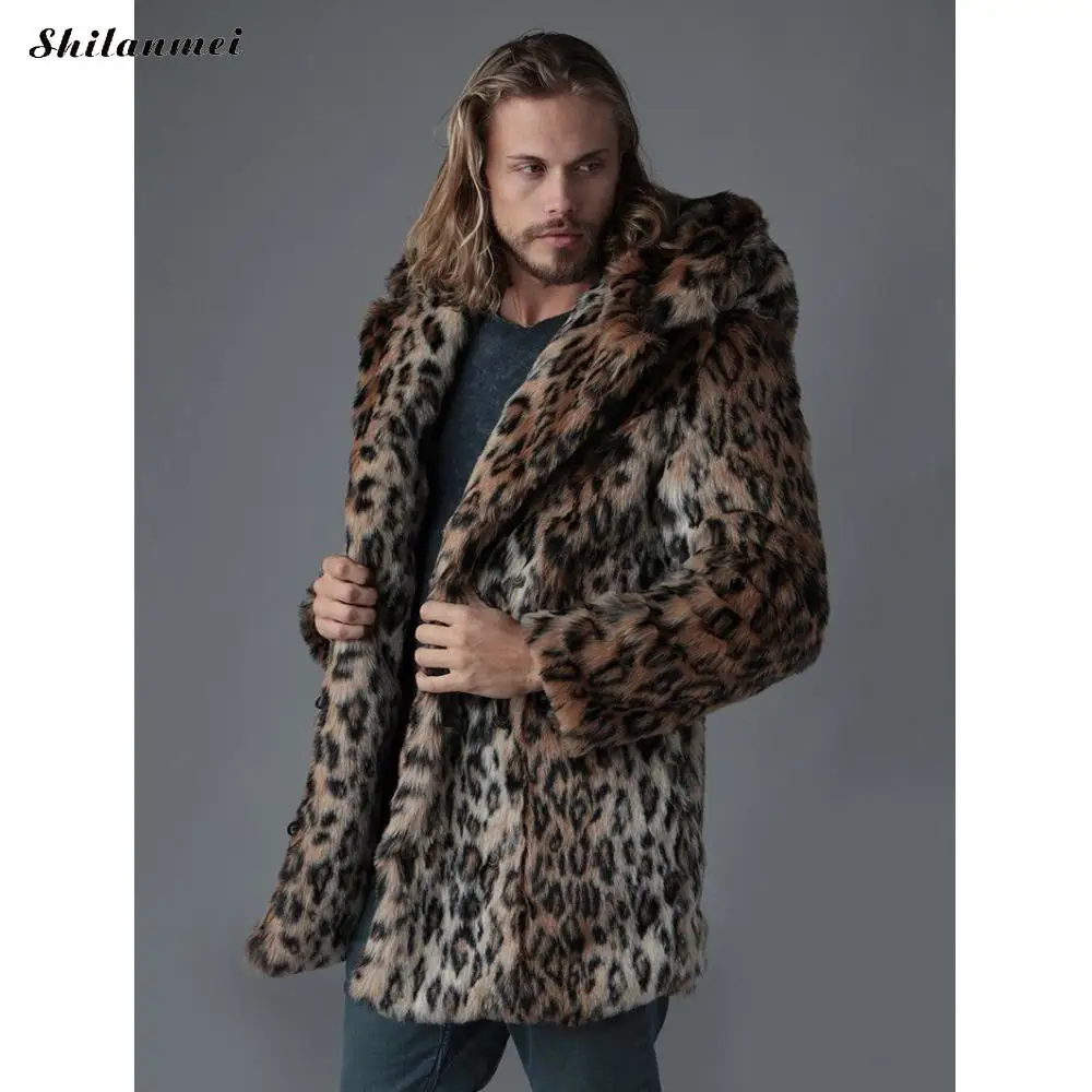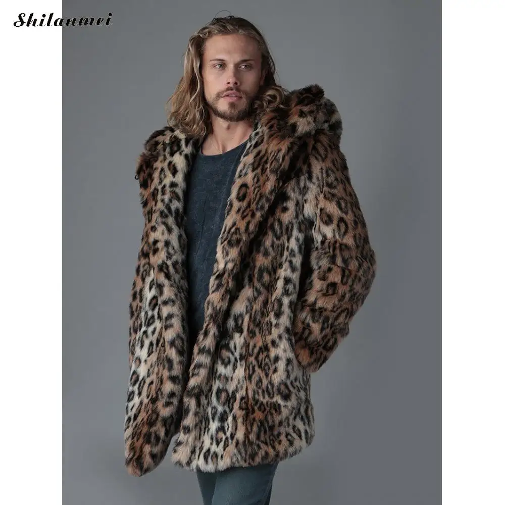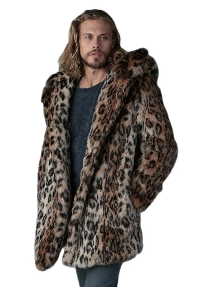Мужское пальто из искусственного меха размера плюс, свадебное, разный размер на выбор, свободное и теплое, леопардовое, коричневое, продается PC
