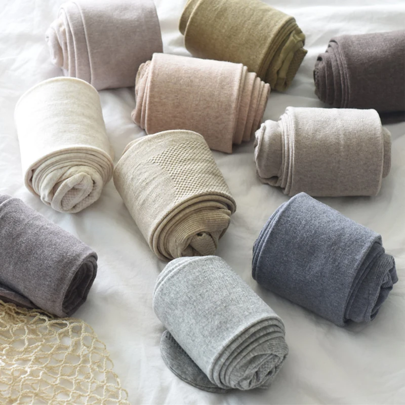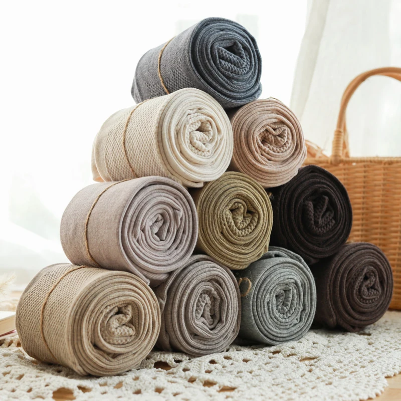 Теплые колготки карамельных цветов на осень и зиму, Плотные хлопковые колготки с высокой эластичной талией, женские колготки в полоску