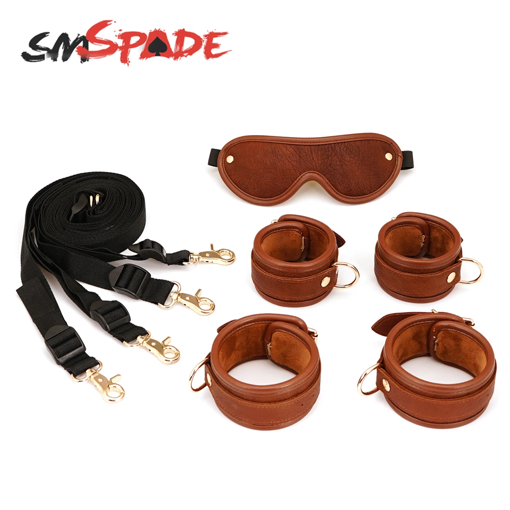 SMSPADE БДСМ кожаный бондаж секс-игрушки для пар искусственные наручники + манжеты и маска на глаза