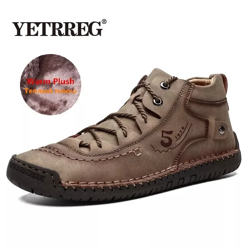 Мужские Зимние ботильоны из спилка, коричневые ботинки с теплым мехом, большие размеры 39-48, зима 2019