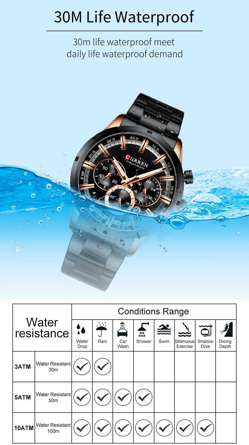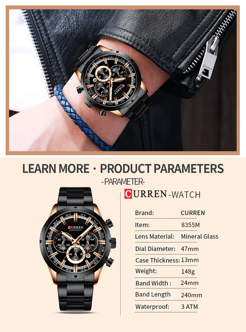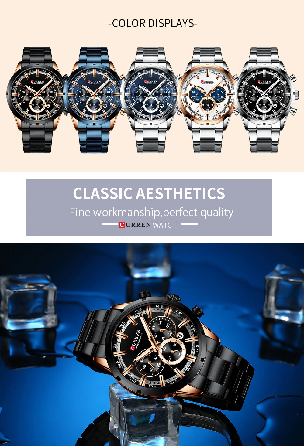 Часы наручные CURREN Мужские кварцевые, люксовые модные повседневные, с хронографом и датой, с браслетом из нержавеющей стали