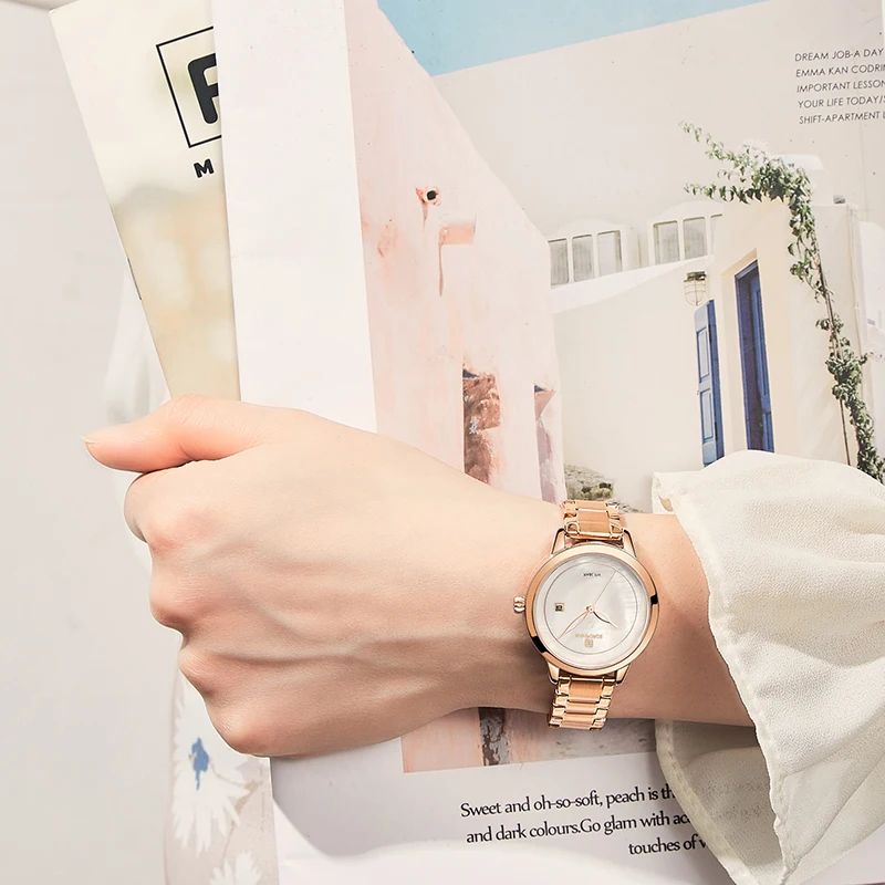 Женские кварцевые наручные часы NAVIFORCE, розовое золото, 5008