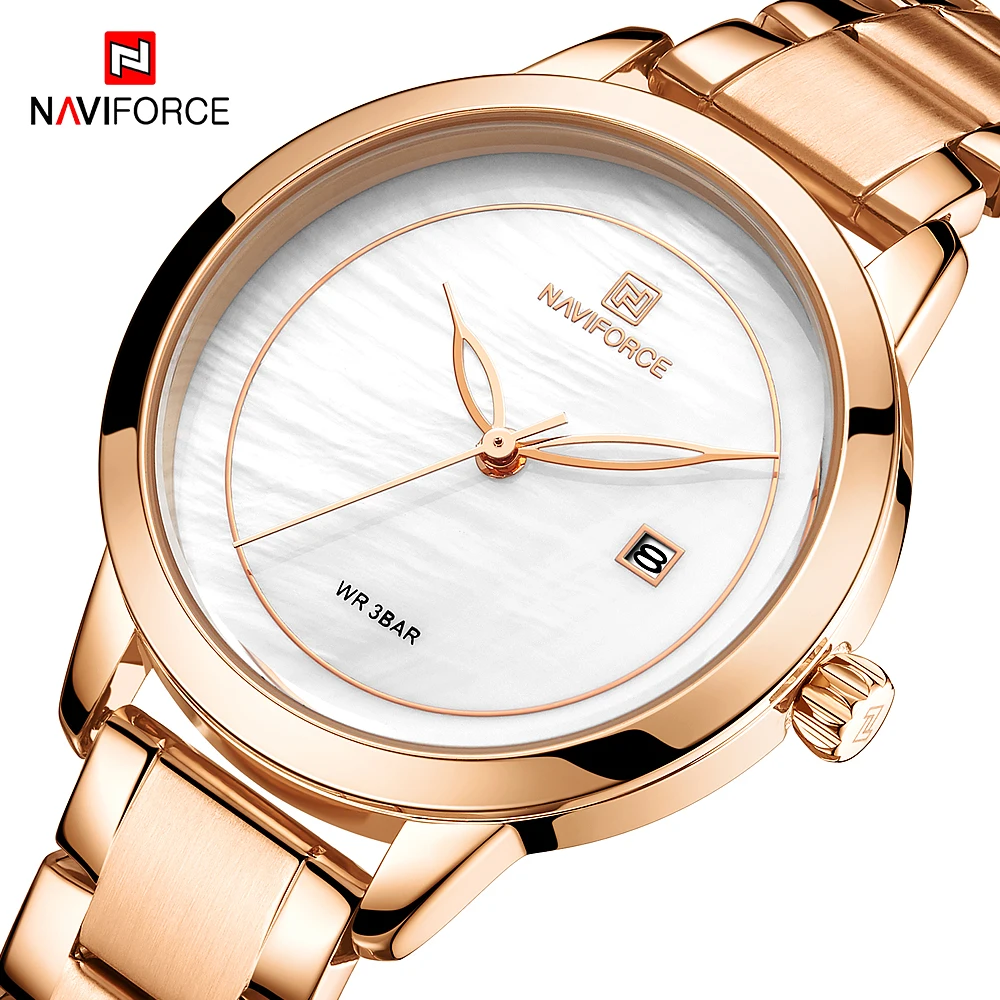 Часы наручные NAVIFORCE женские, роскошные модные водонепроницаемые повседневные, цвет розовое золото