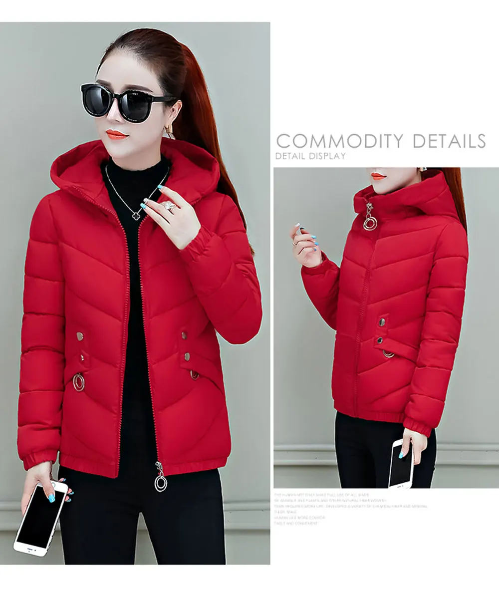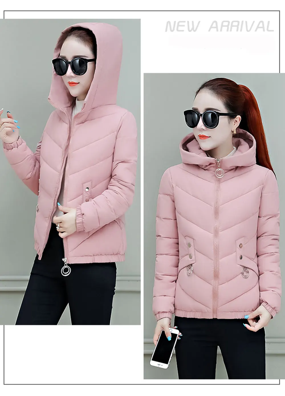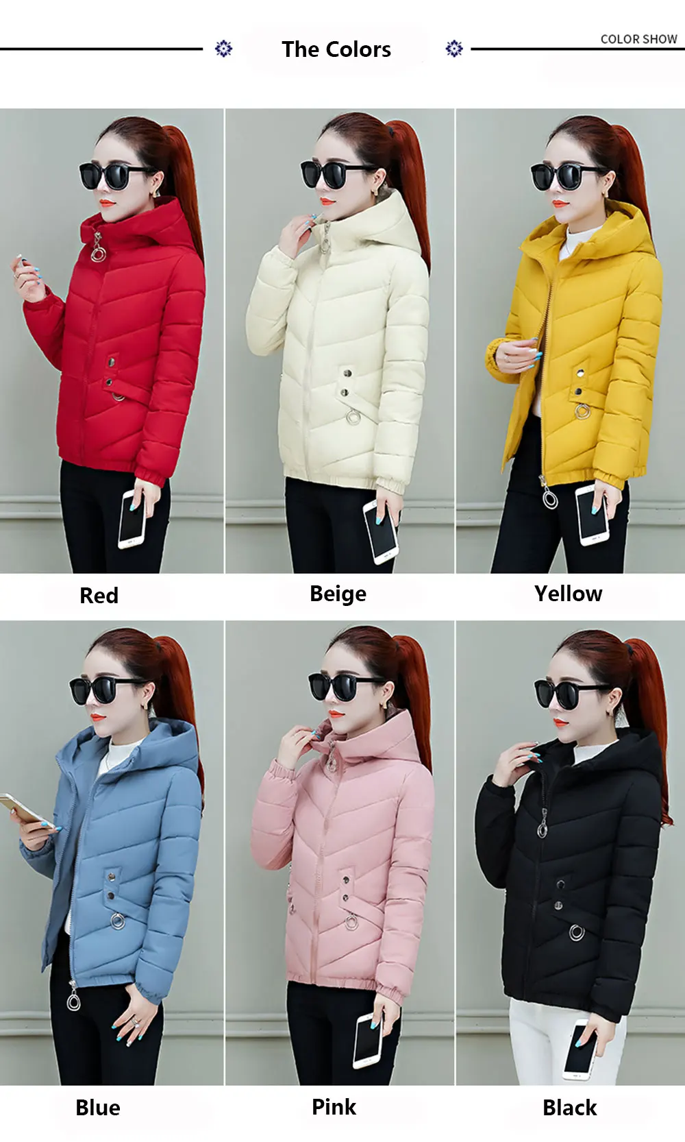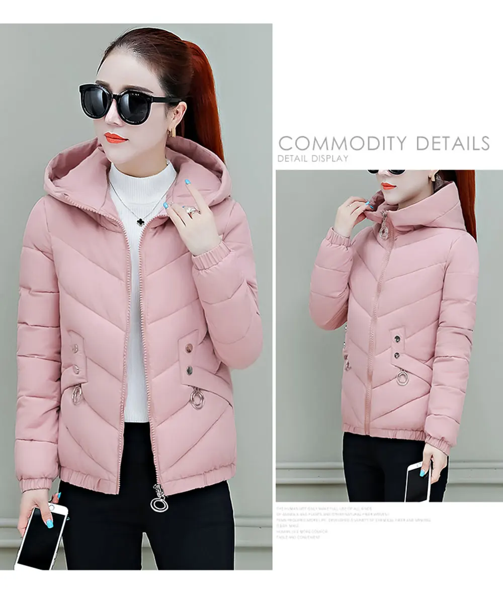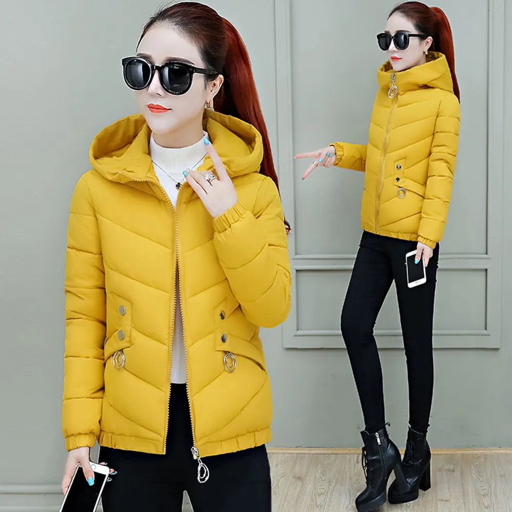 Куртка женская зимняя с капюшоном, с хлопковой подкладкой, однотонная, 2020, Цветные парки