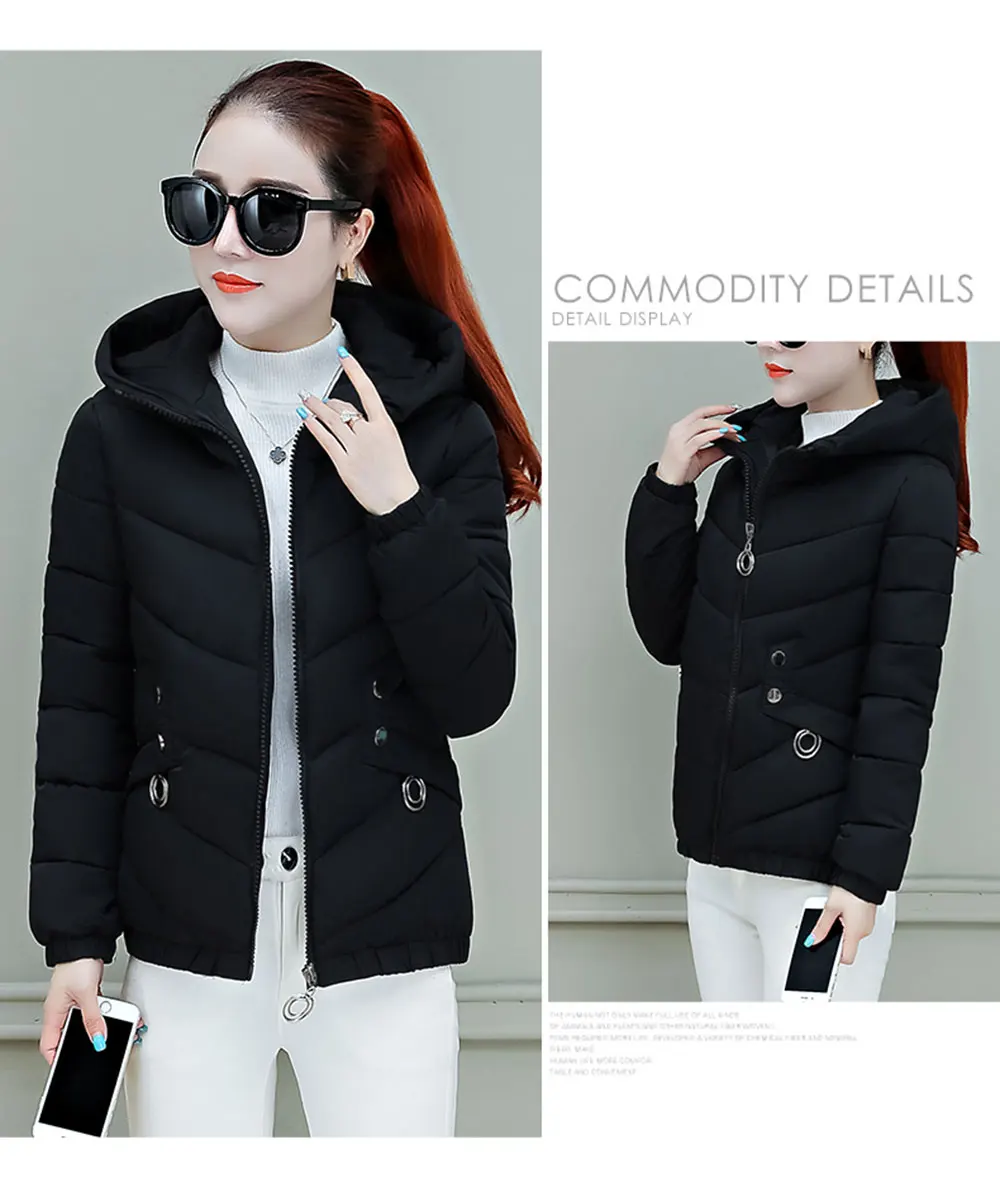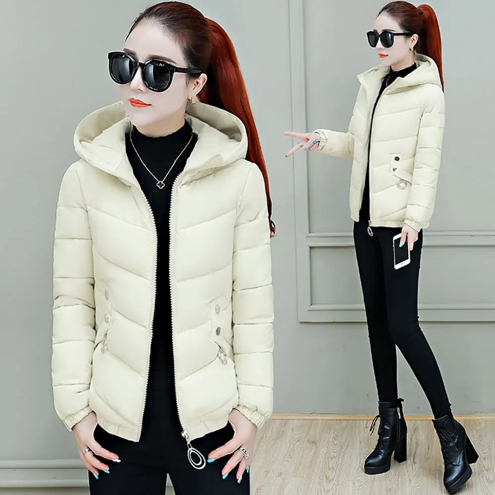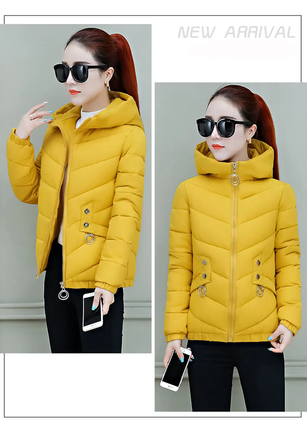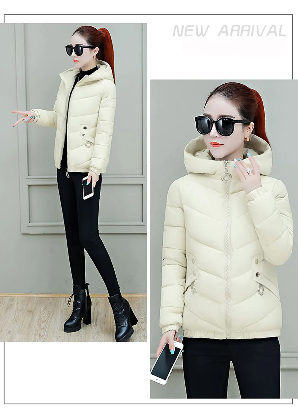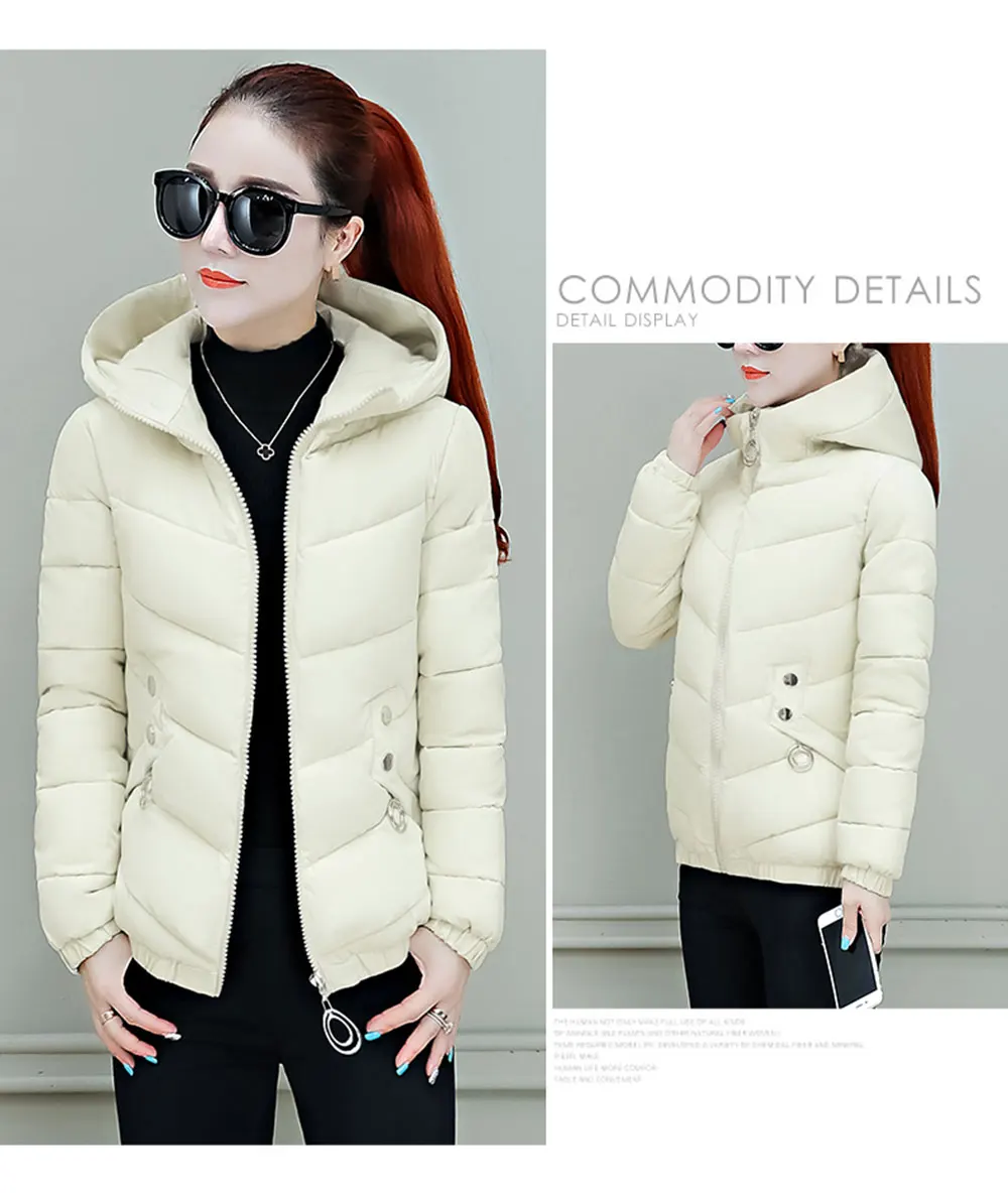 Куртка женская зимняя с капюшоном, с хлопковой подкладкой, однотонная, 2020, Цветные парки