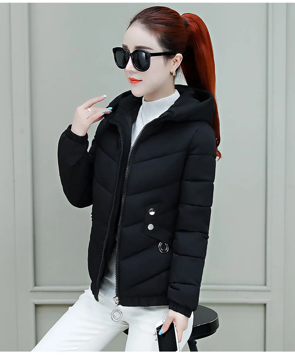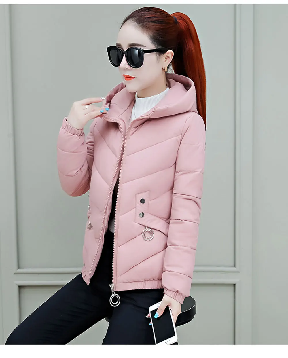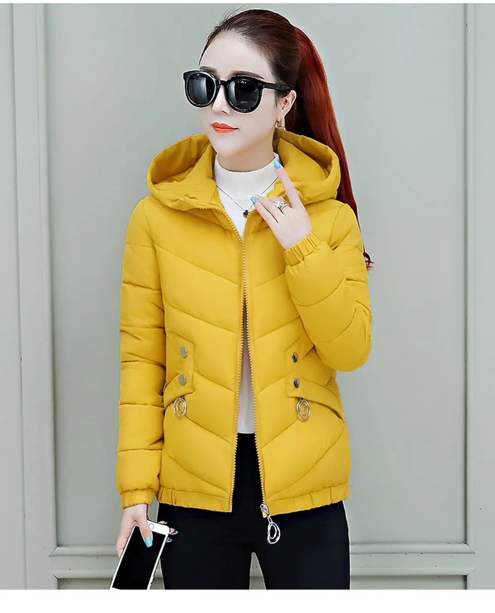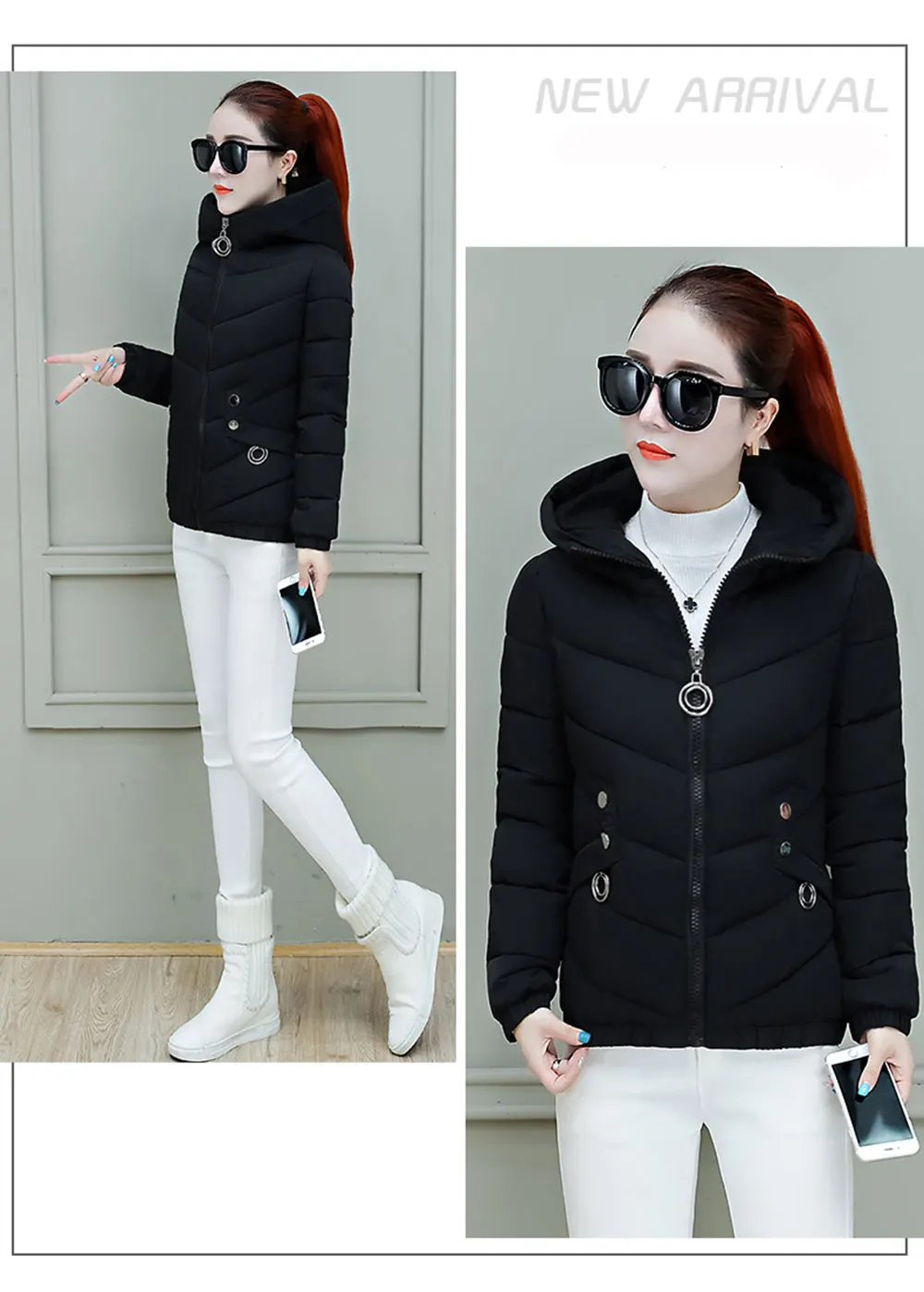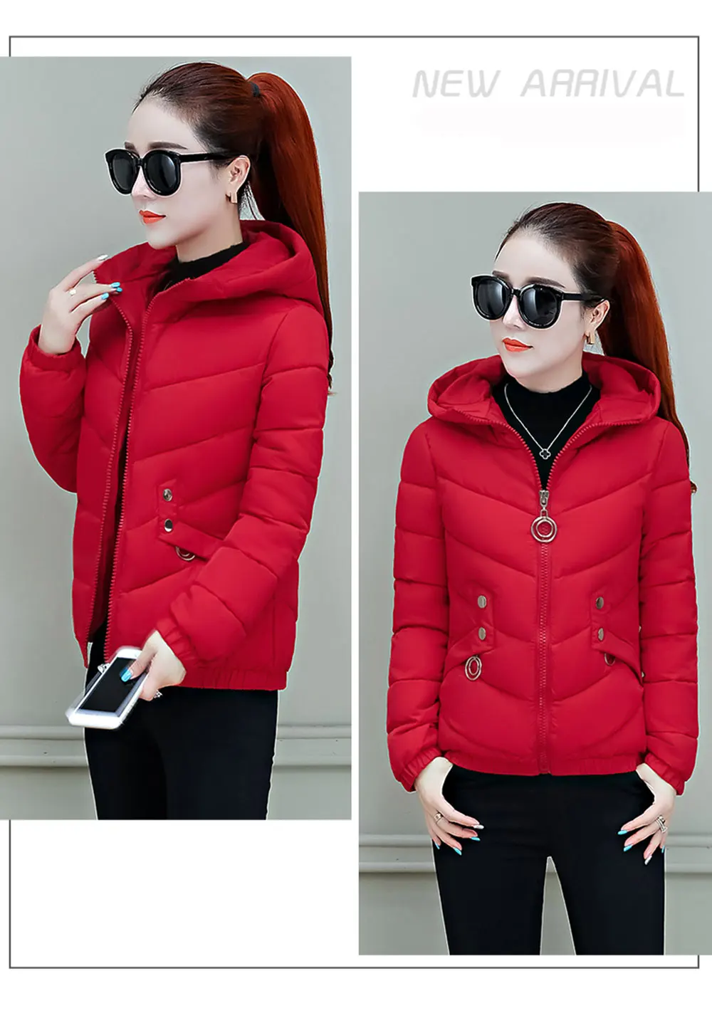 Куртка женская зимняя с капюшоном, с хлопковой подкладкой, однотонная, 2020, Цветные парки