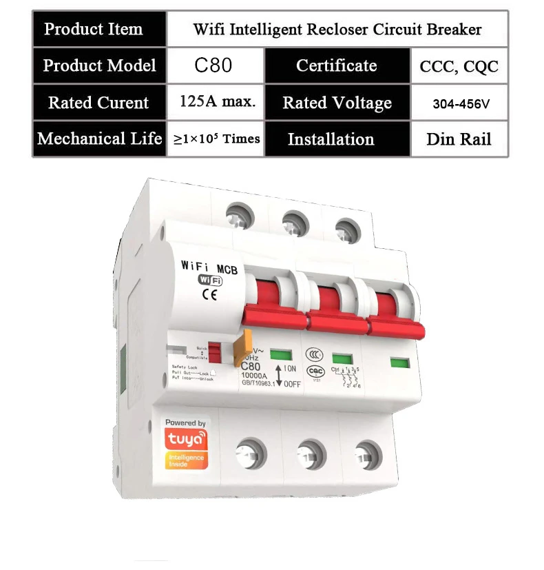 Tuya Smart 3P 16A-125A пульт дистанционного управления WiFi автоматический выключательумный выключательинтеллектуальный автоматический Recloser Alexa Goolge совместимый
