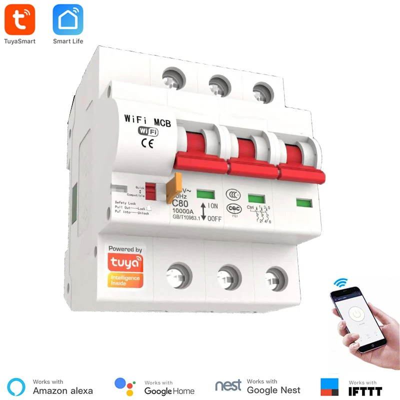 3P Wi-Fi, интеллигентая (ый) АПВ автомат защити цепи может быть широко использован в домашнем хозяйстве, фабрик, студенческого общежития, сельскохозяйственных угодий, муниципальные работы и может Как умный пульт дистанционного управления водяным насосом, водонагревателем, напольным отопительным оборудованием и т.д. Спецификация: Напряжение: 85 ~ 250 В АС Ток: 16A/25A/32A/40A/63A/80A/100A/125A . (Пожалуйста, выберите нужную вам версию) Wi-Fi: 2,4 ГГц Пульт дистанционного управления: с помощью приложения смартфона (смартфон должен подключаться к Интернету через Wi-Fi или 3g/4g) Применение: Smart life/tuay smart (Бесплатная загрузка в IOS и Andorid) Функции: включение/выключение/таймер/смарт сцена Совместим с: Alexa , google home. Защитные функции: защита от перегрузки, короткого замыкания, изоляционная защита.