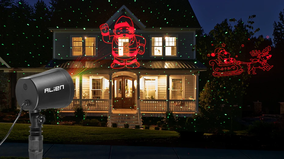 ALIEN Рождество лазерный проектор движение красная тема Санта-лось сани статические зеленые точки Звезда Открытый водонепроницаемый сад дерево шоу светильник