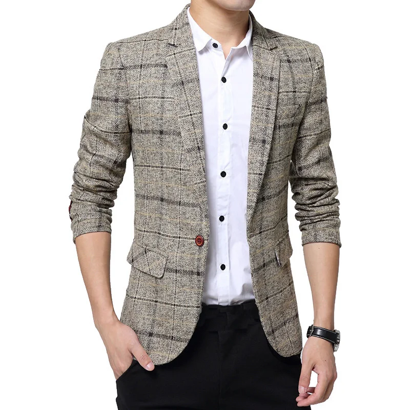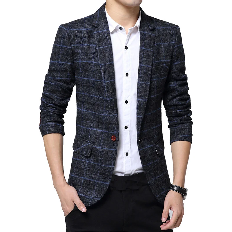 Мужской Блейзер, повседневный приталенный пиджак в клетку, модель 2020 5XL, весна-осень